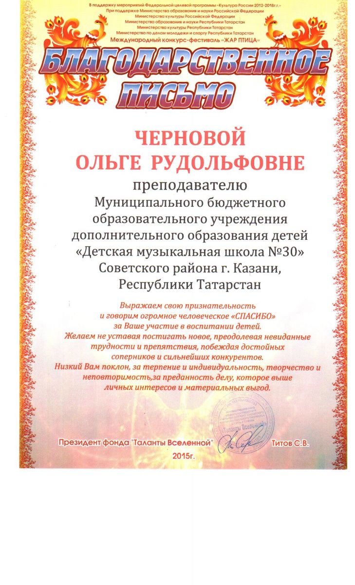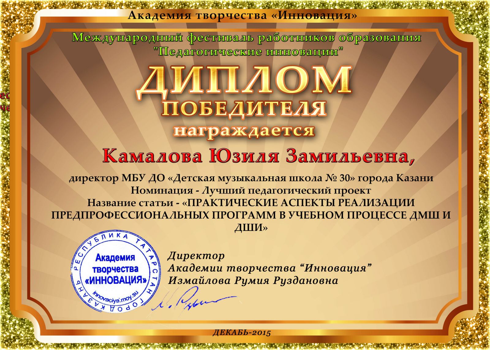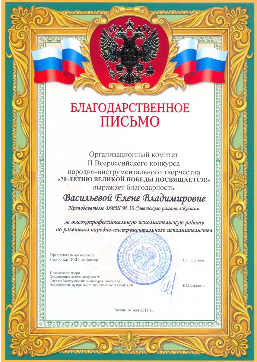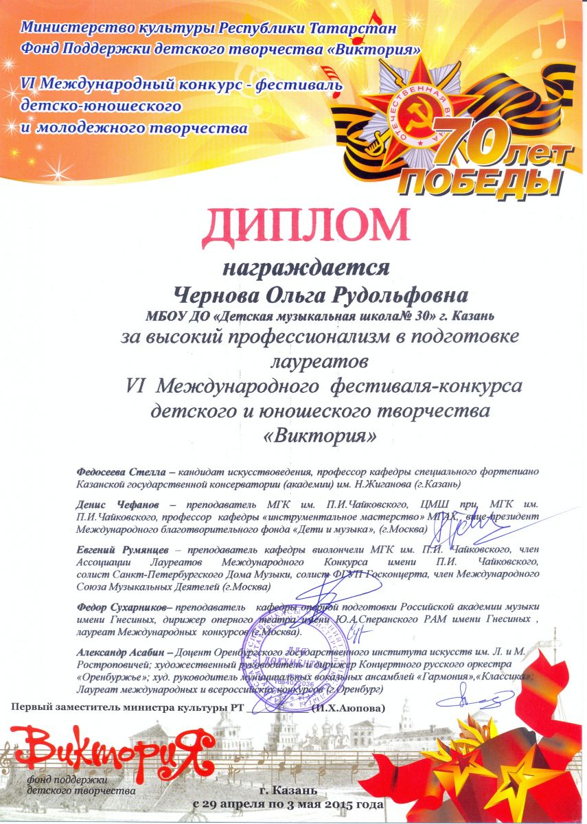 Всероссийская акция «Ночь искусств-2015», фестиваль «В хороводе муз» - Камалова Р.З. – диплом