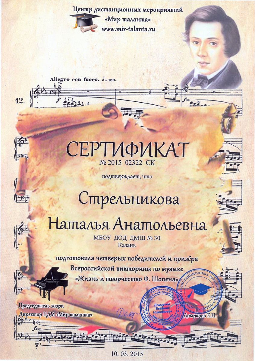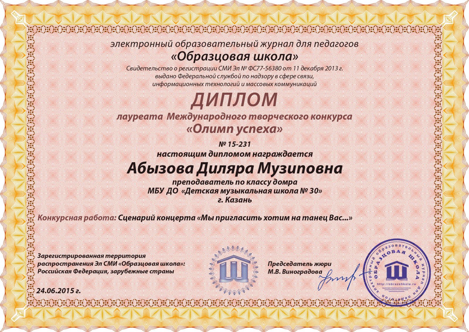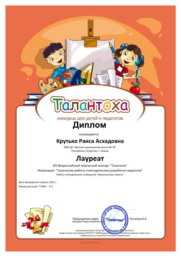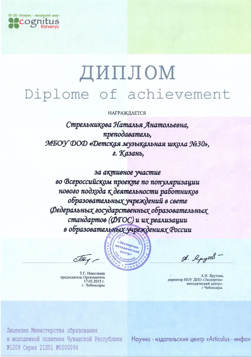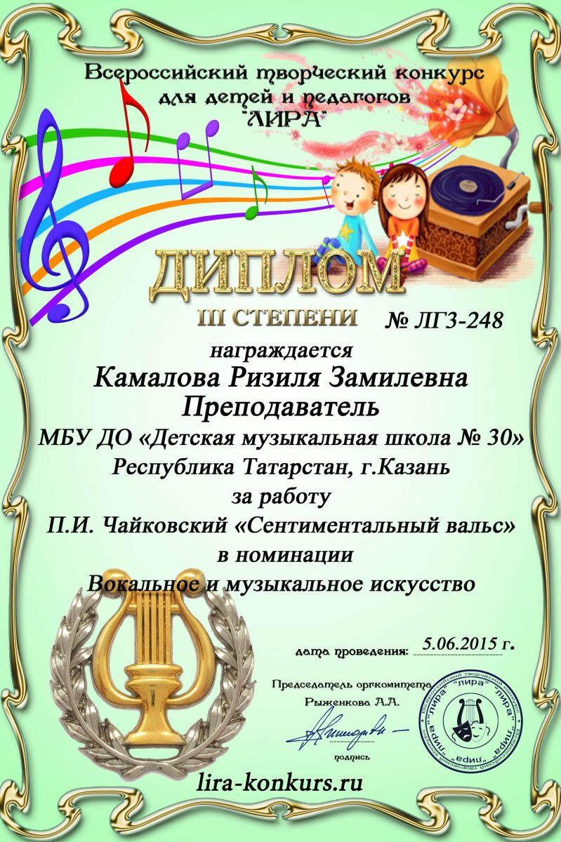 Всероссийская акция «Ночь искусств-2015», фестиваль «В хороводе муз» - Камалова Р.З. – диплом