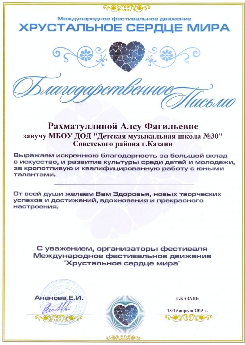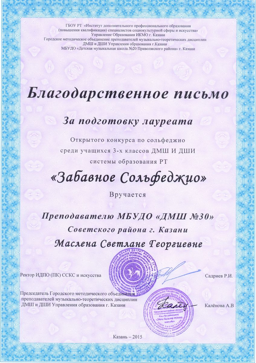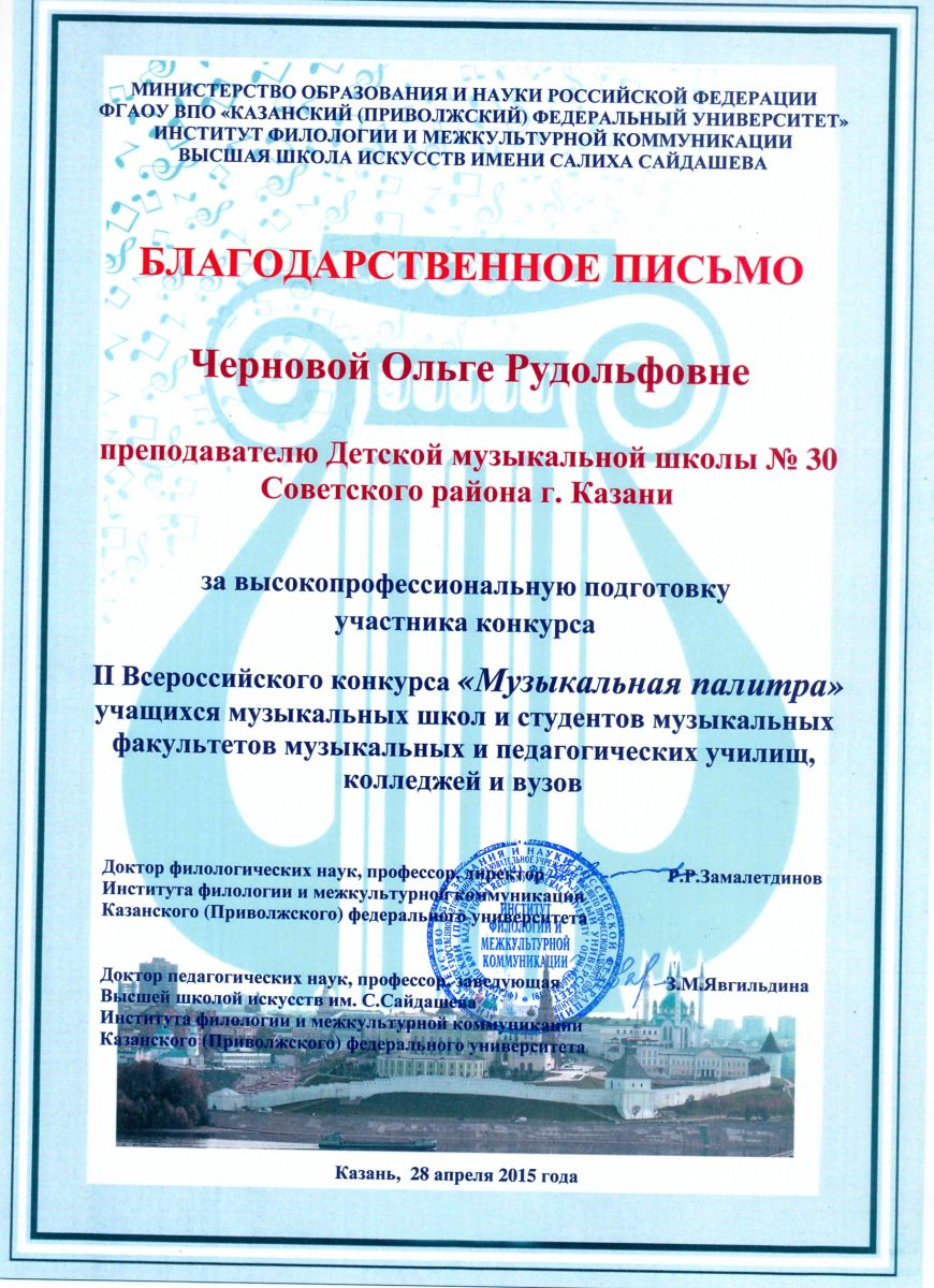 Муниципальное бюджетное учреждение дополнительного образования «Детская музыкальная школа №30» Советского района г.Казани