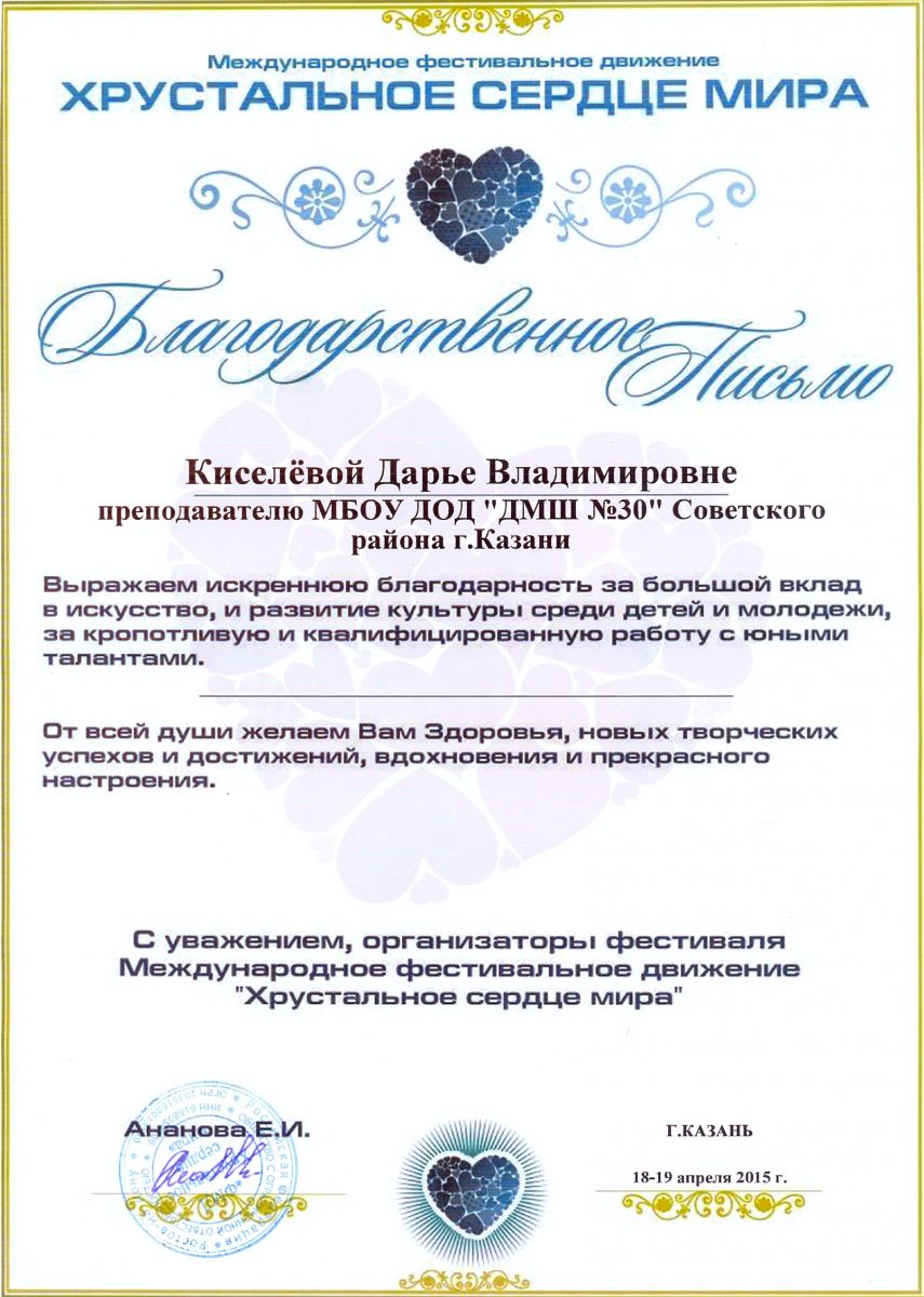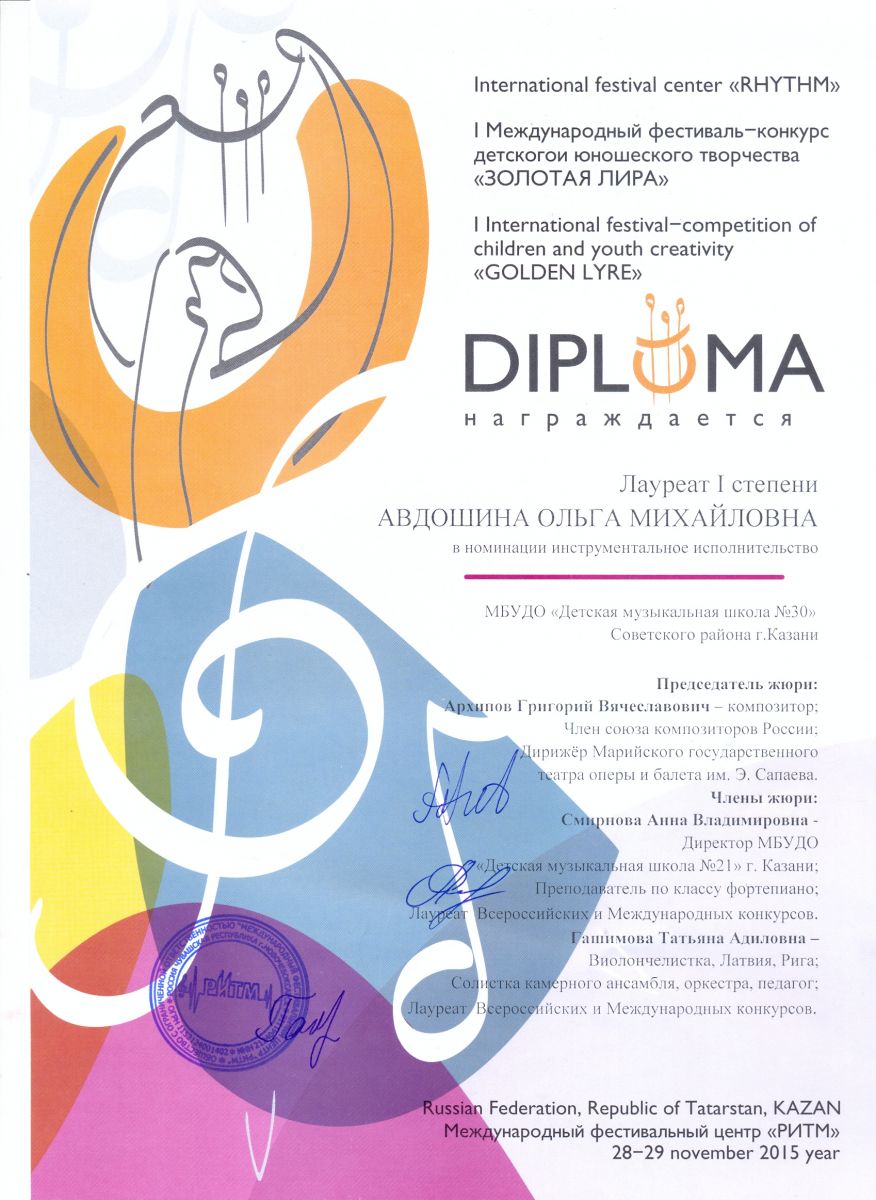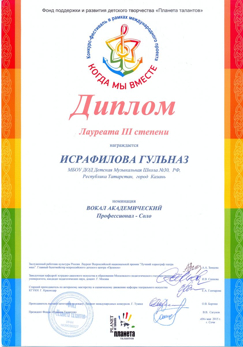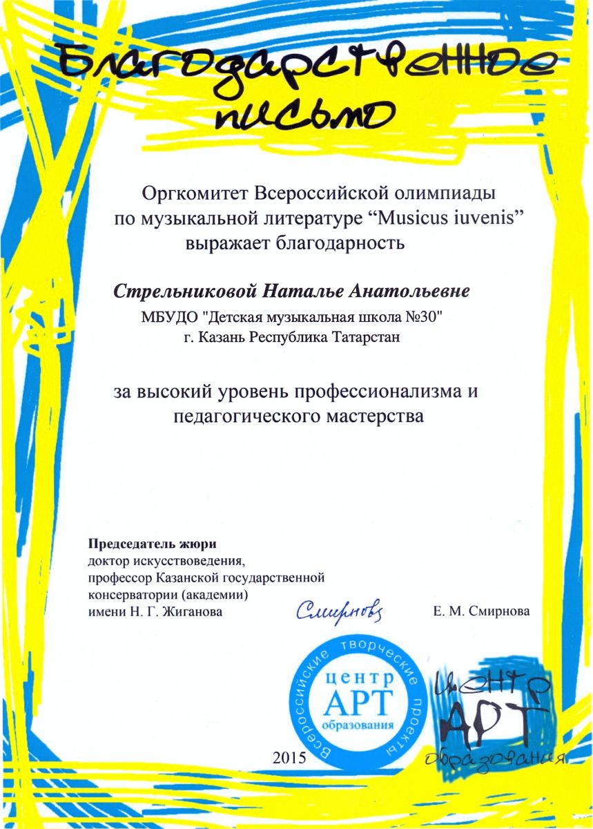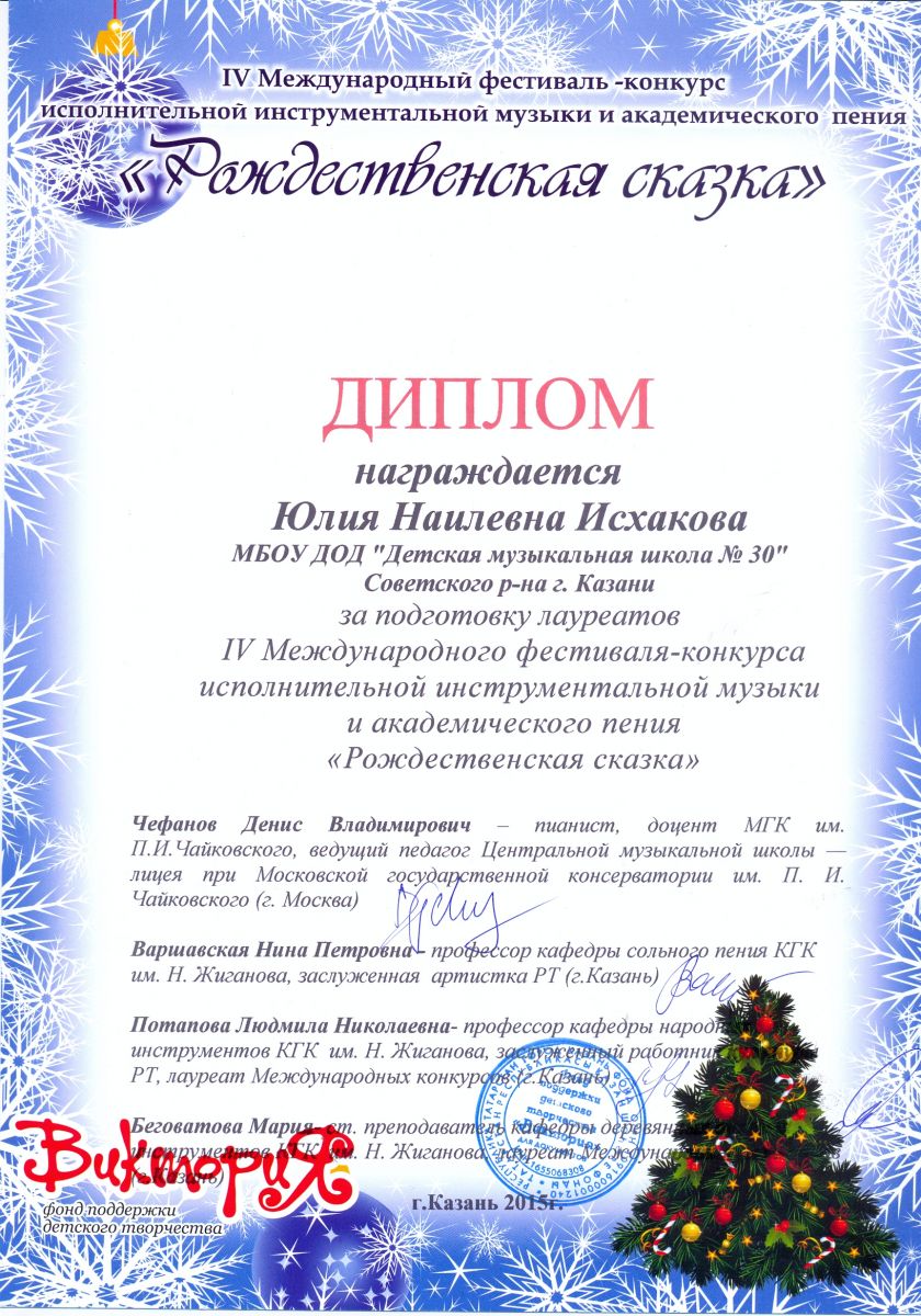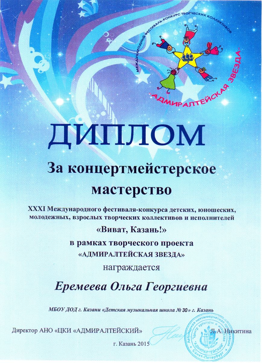 Всероссийская акция «Ночь искусств-2015», фестиваль «В хороводе муз» - Камалова Ю.З. – диплом