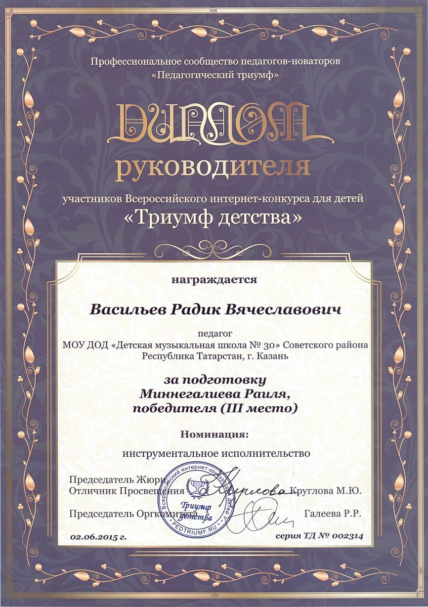 Международный юношеский и детский конкурс "Широка страна моя родная" - Галимова Ф.М. - I место