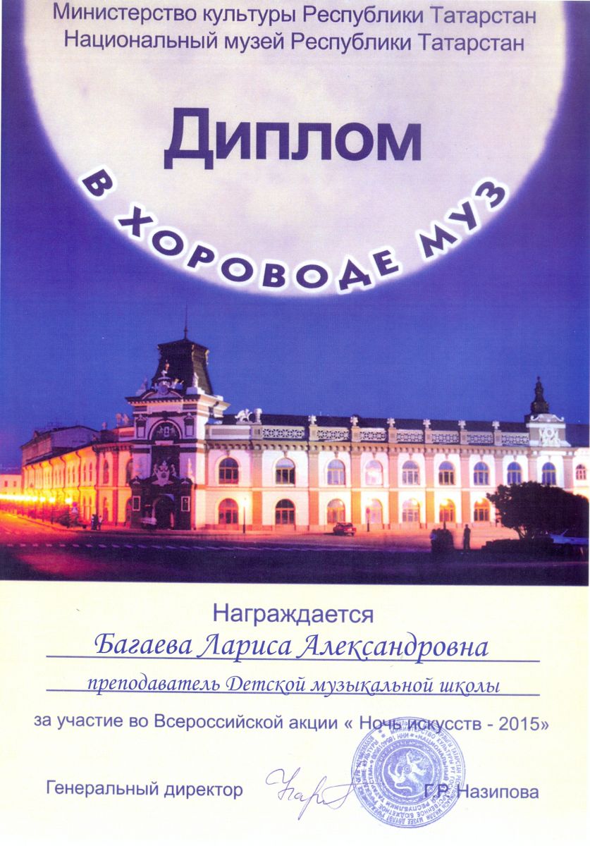 Всероссийская акция «Ночь искусств-2015», фестиваль «В хороводе муз» - Багаева Л.А. – диплом