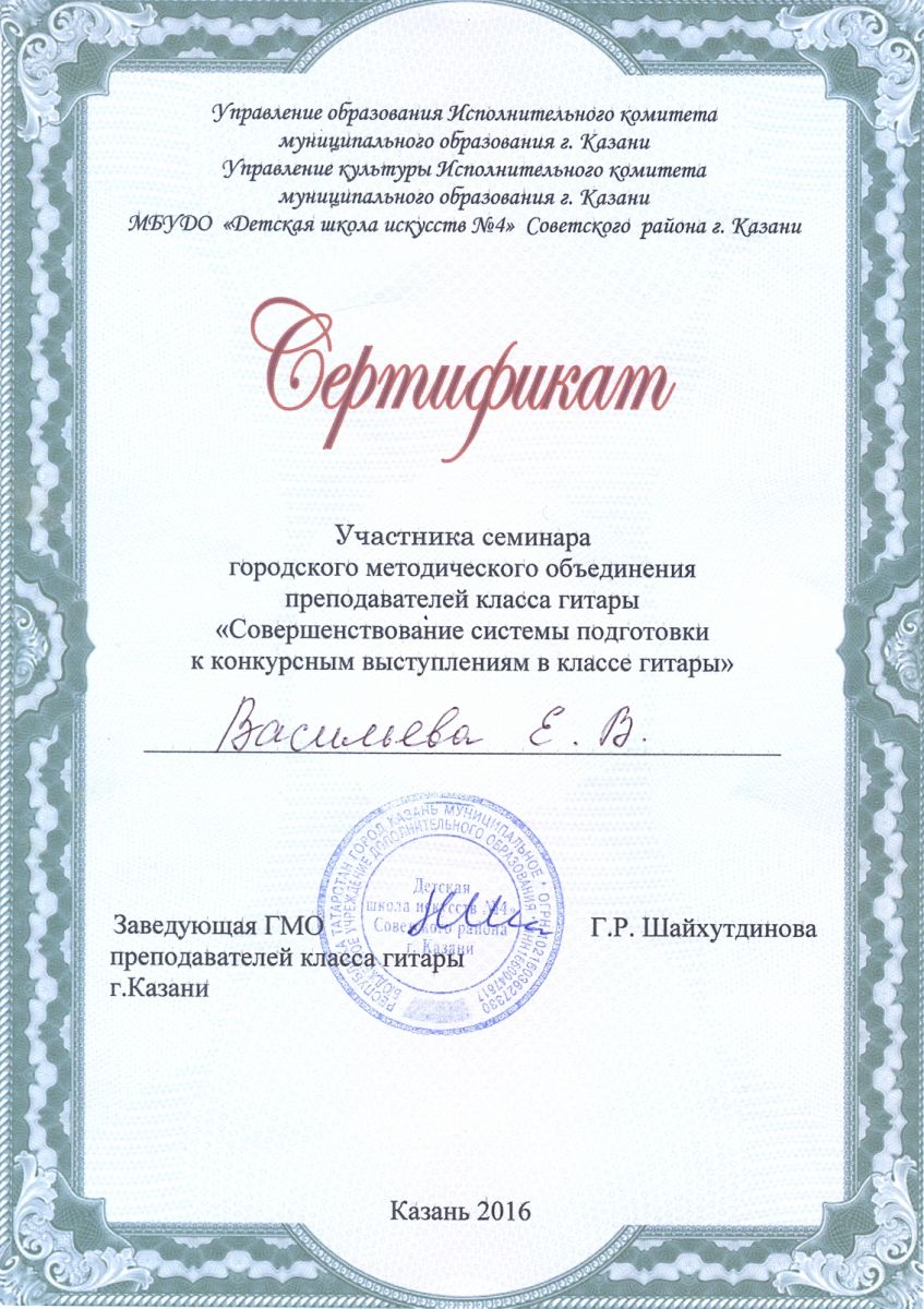 Городской семинар преподавателей класса гитары "Совершенствование системы подготовки к конкурсным выступлениям в классе гитары" - Васильева Е.В.