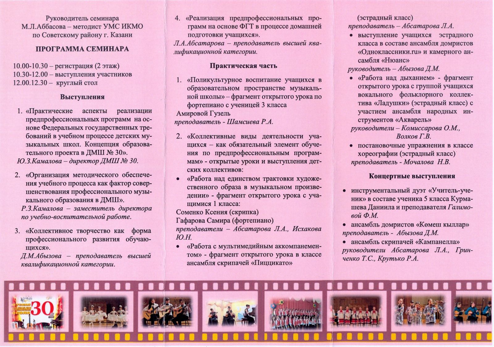 Районный семинар руководящих и педагогических работников учреждения дополнительного образования Советского района "Практические аспекты реализации предпрофессиональных программ на основе Федеральных государственных требований в учебном процессе ДМШ и ДШИ" - доклад "Концепция образовательного проекта в ДМШ № 30" - Камалова Ю.З.