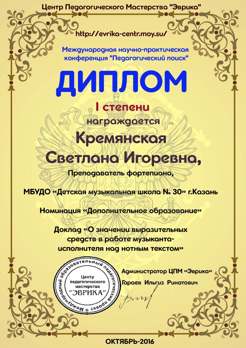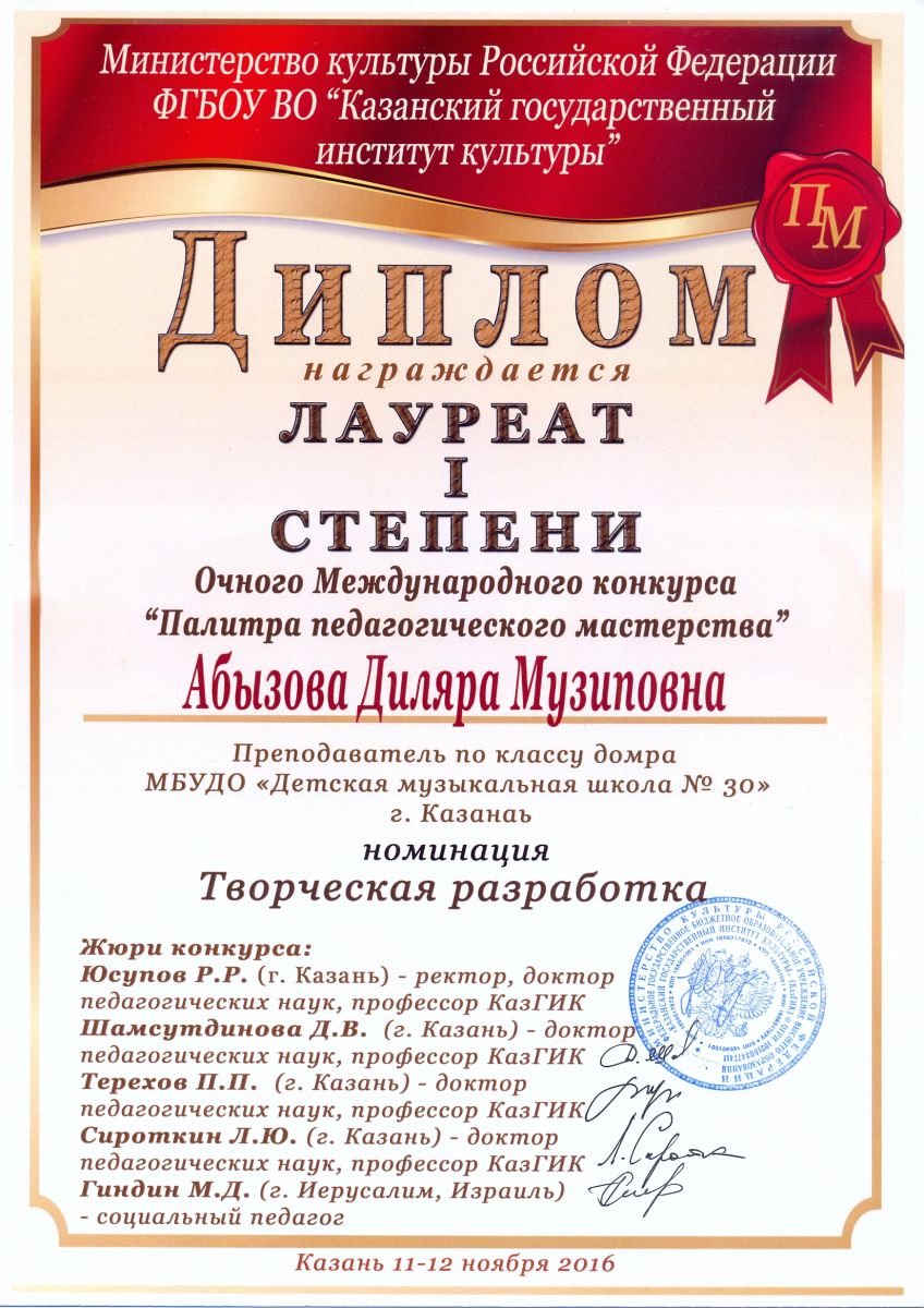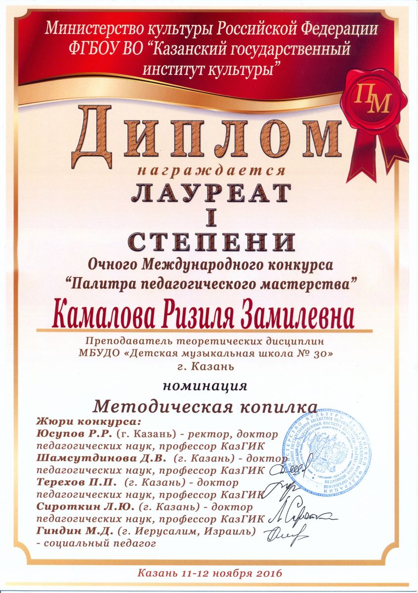 IV Республиканский конкурс ансамблей "Учитель-ученик" - Галиомва Ф.М. - диплом I степени