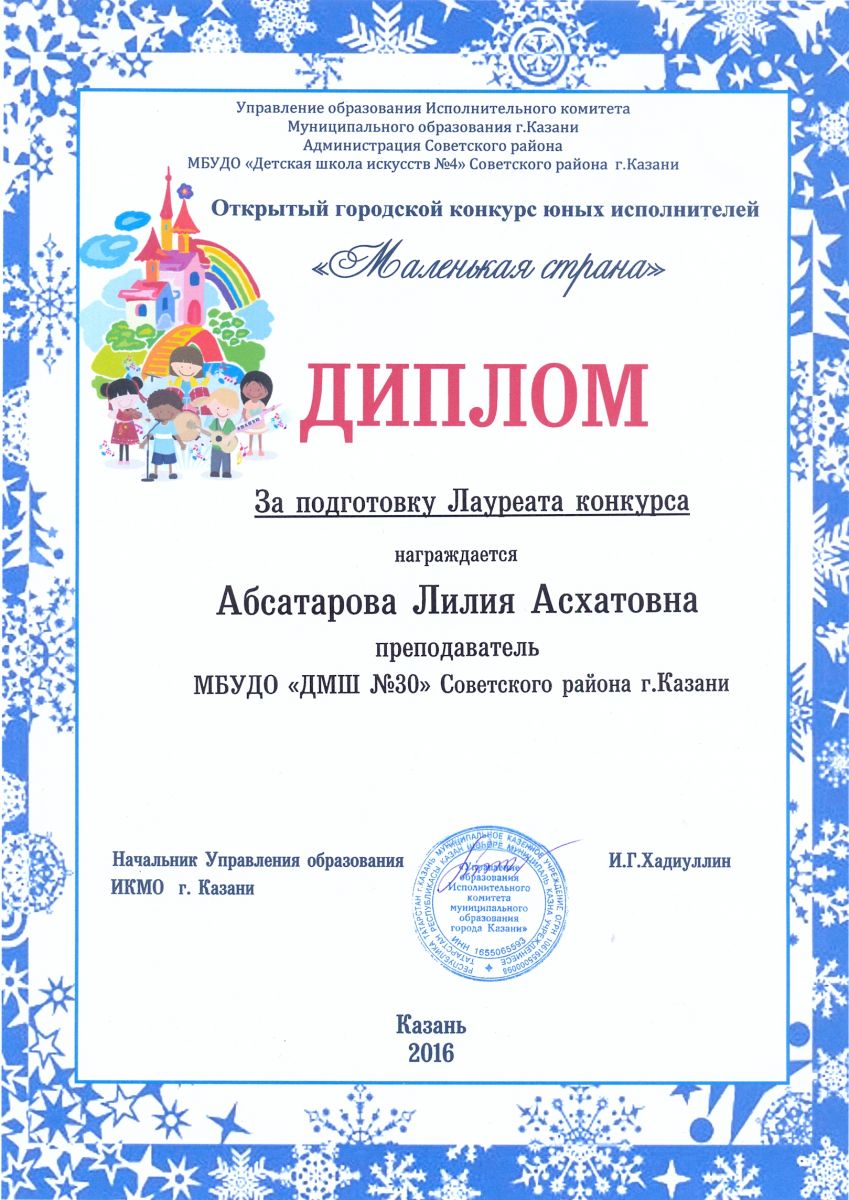 Муниципальное бюджетное учреждение дополнительного образования «Детская музыкальная школа №30» Советского района г.Казани