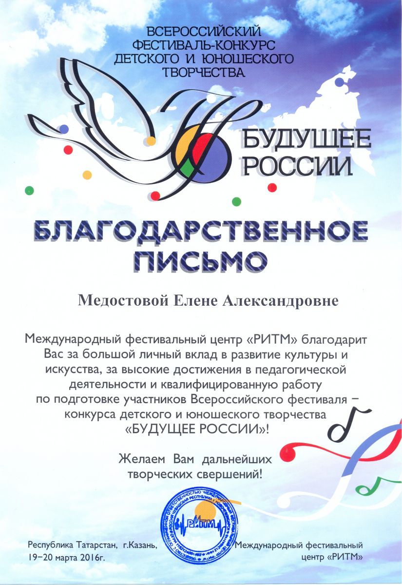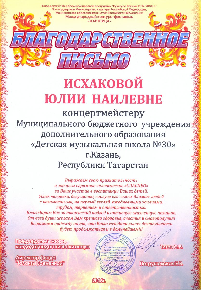 Международный фестиваль-конкурс "Хрустальное сердце мира" - Санукова Н.В. - благодарственное письмо