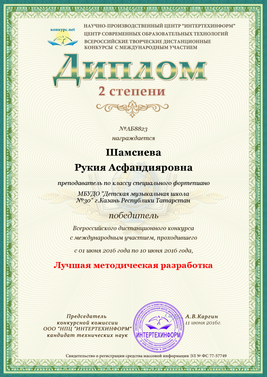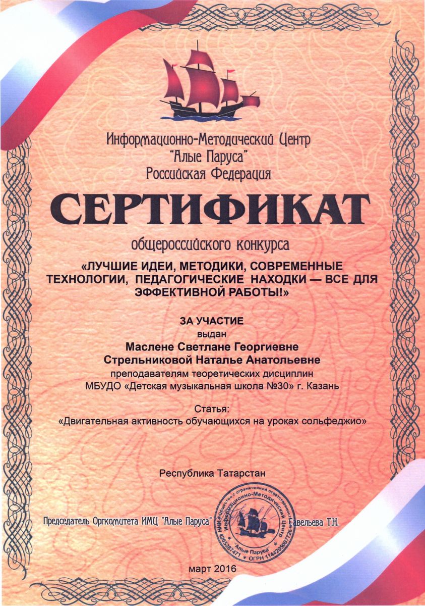 III Международный конкурс метадических разработок "Новая компетенция" - Маслена С.Г. - I место