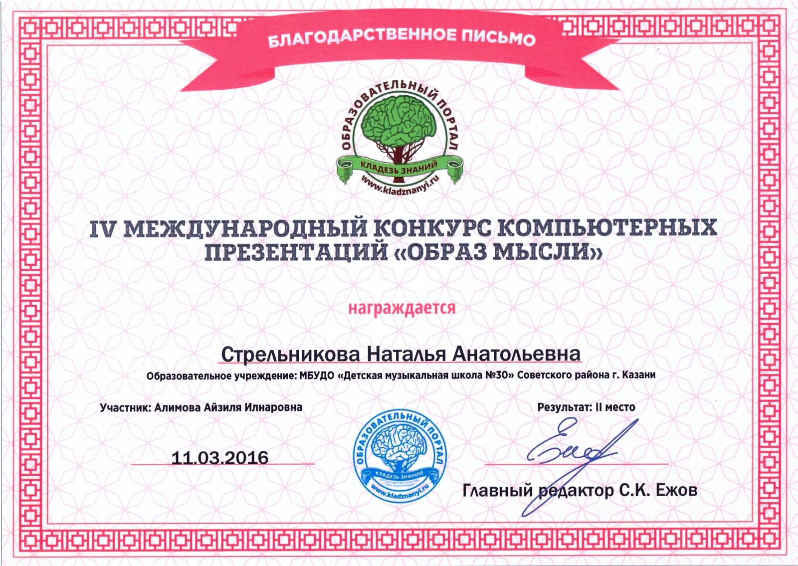 III Международный конкурс метадических разработок "Новая компетенция" - Стрельникова Н.А. - II место