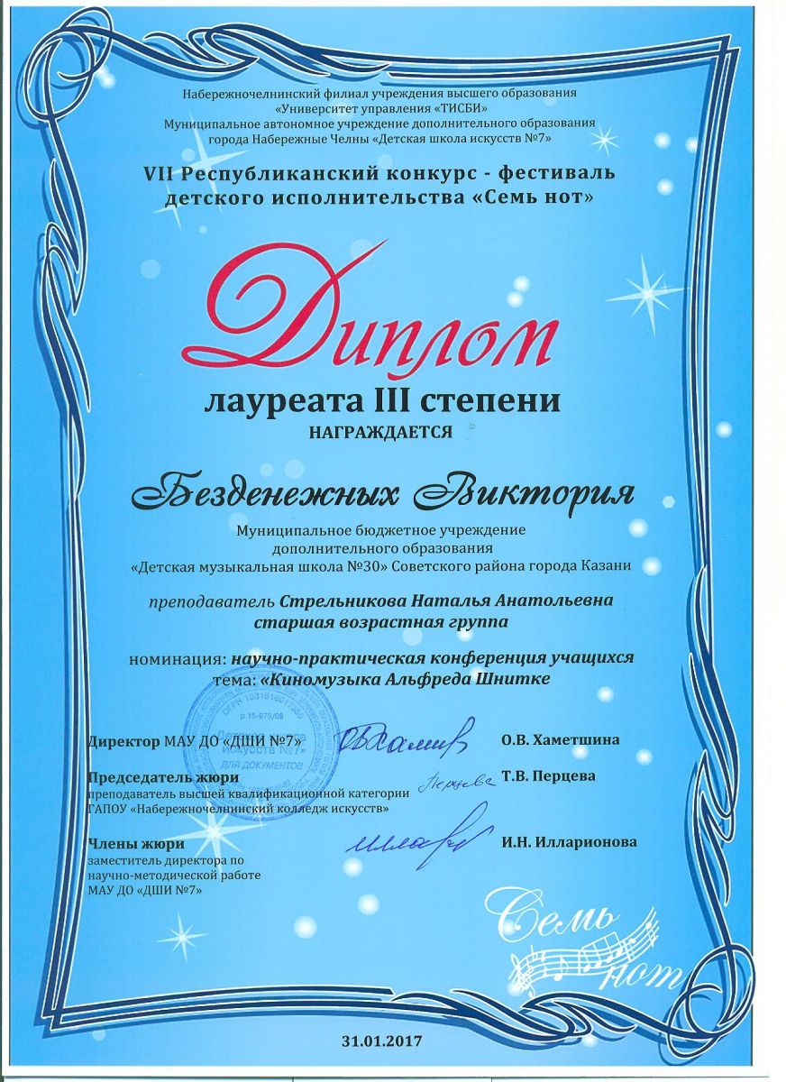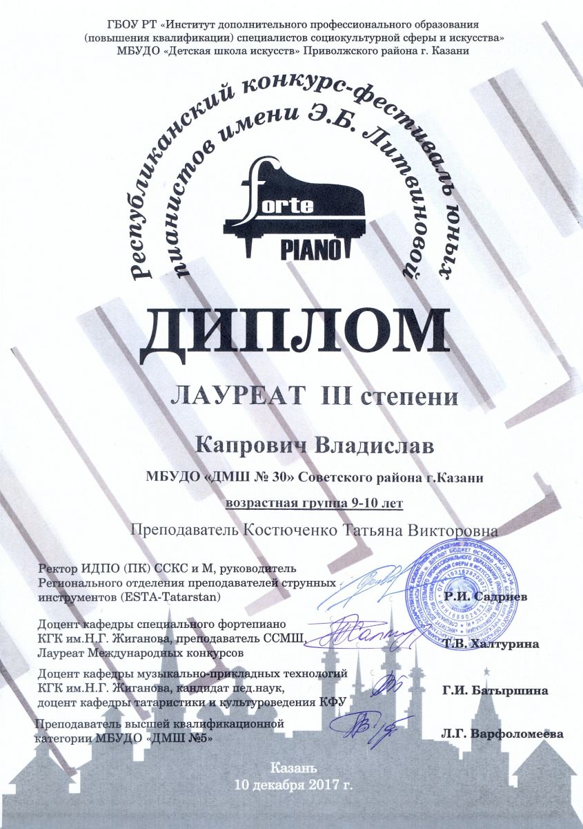 Республиканский конкурс пианистов "Музыкальная мозаика" - Сапарина Валерия - диплом III степени