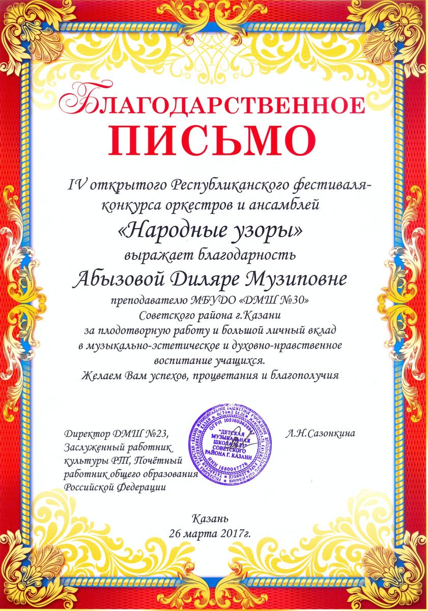 Муниципальное бюджетное учреждение дополнительного образования «Детская музыкальная школа №30» Советского района г.Казани