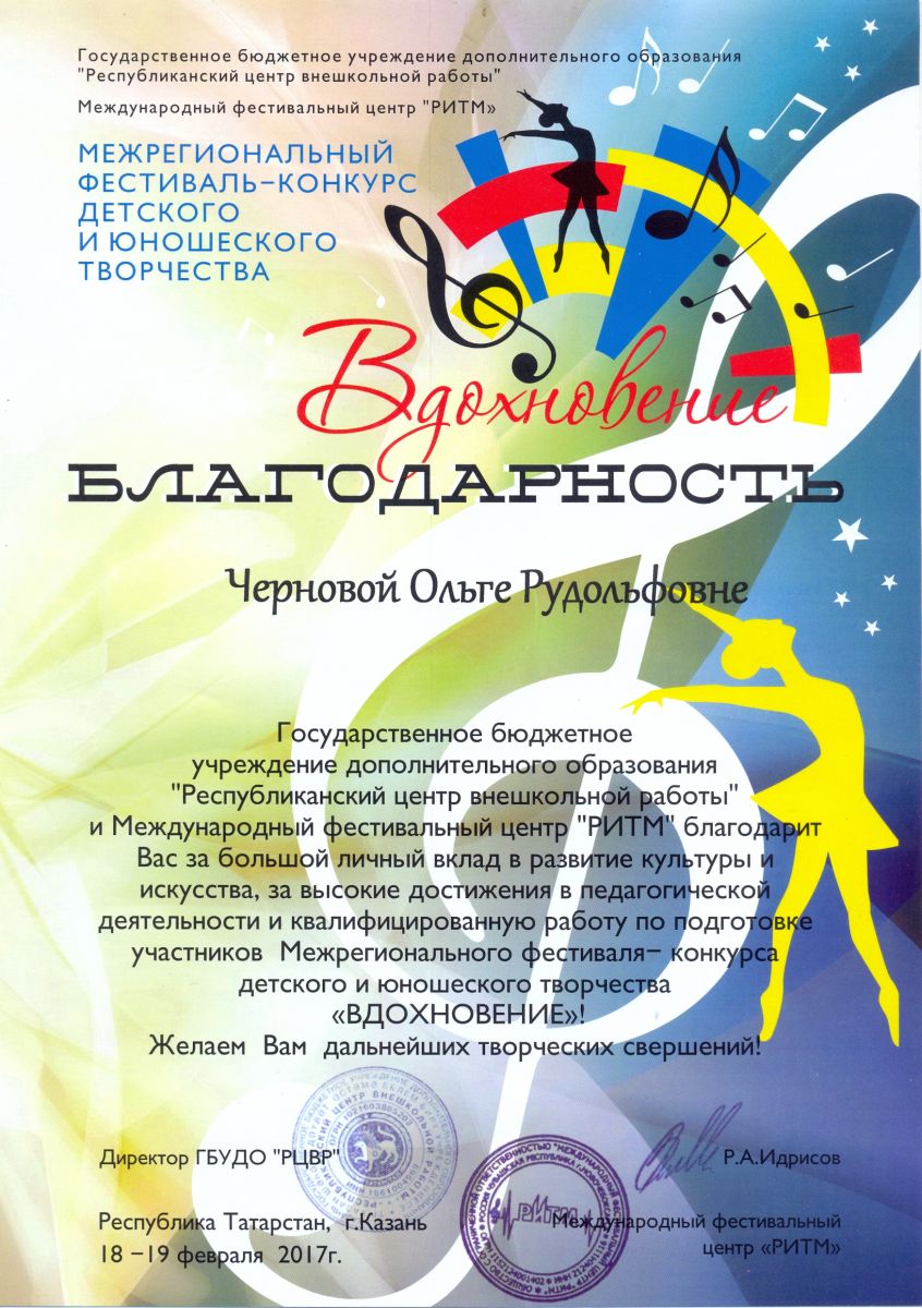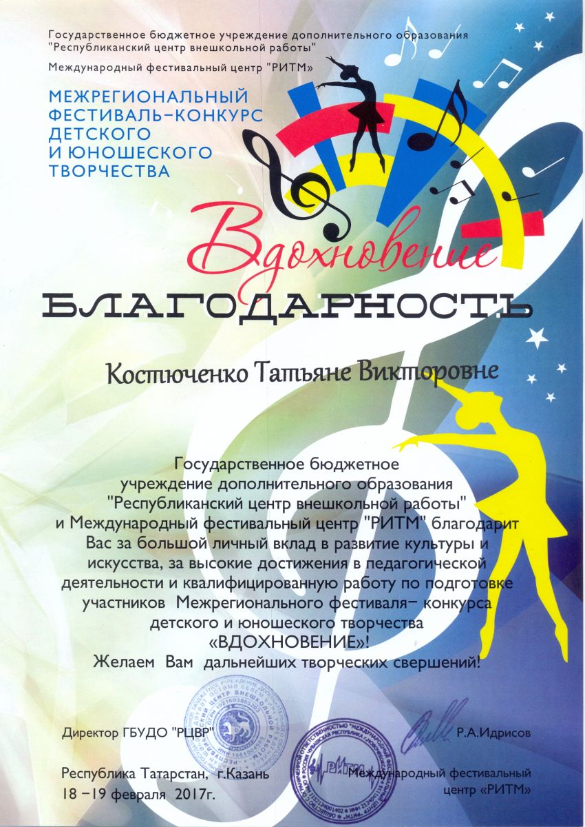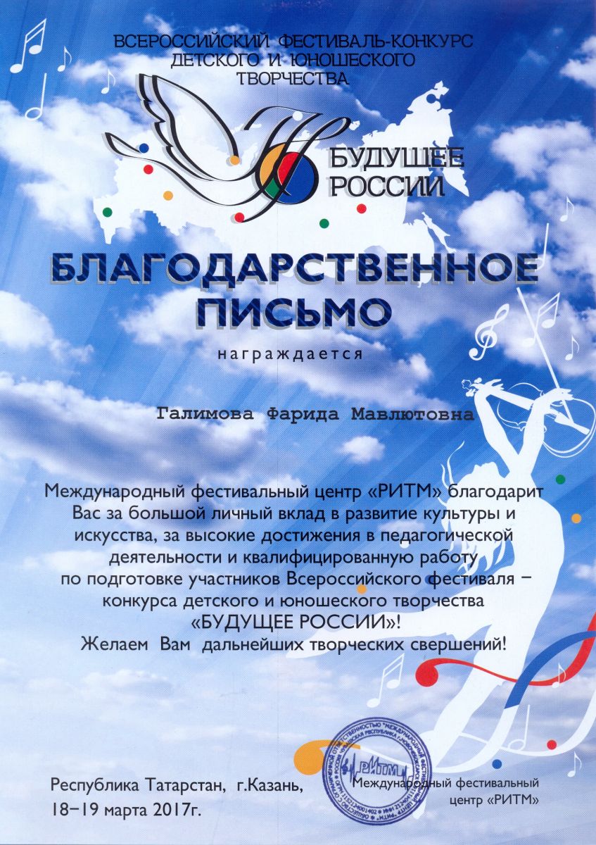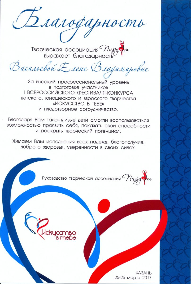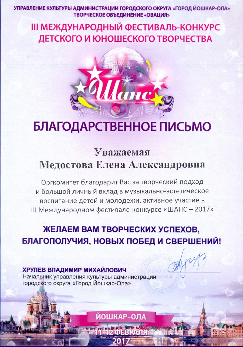 Международный фестиваль-конкурс "Хрустальное сердце мира" - Санукова Н.В. - благодарственное письмо