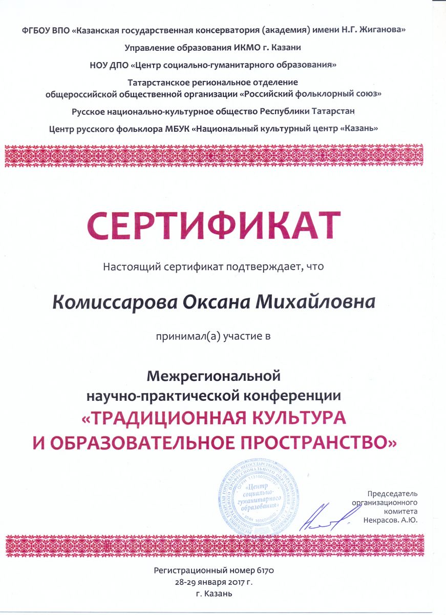 Межрегиональная научно-практическая конференция "Традиционная культура и образовательное пространство" - доклад  "Работа с детским фольклорным ансамблем в условиях ДМШ и ЦДТ: особенность и различия" - Комиссарова О.М.