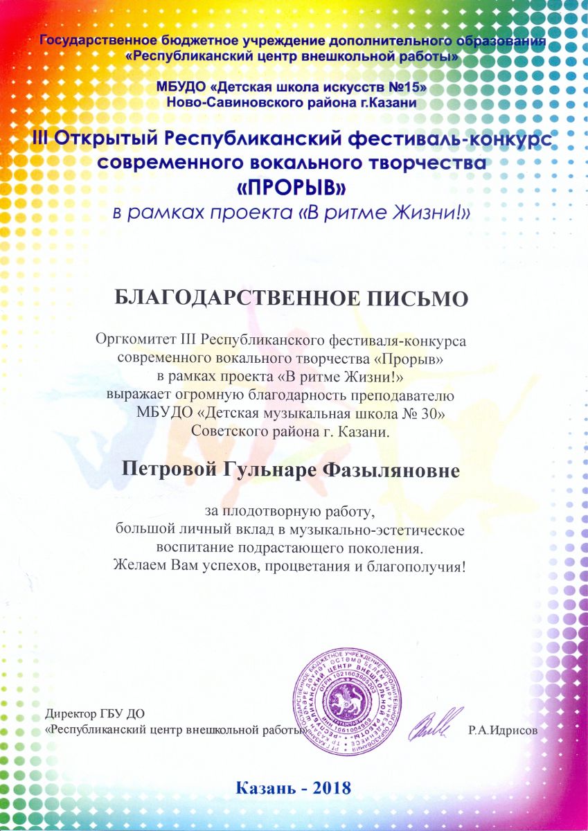 Республиканский творческий конкурс "Грани успеха" - Исрафилова Г.М. - Благодарственное письмо