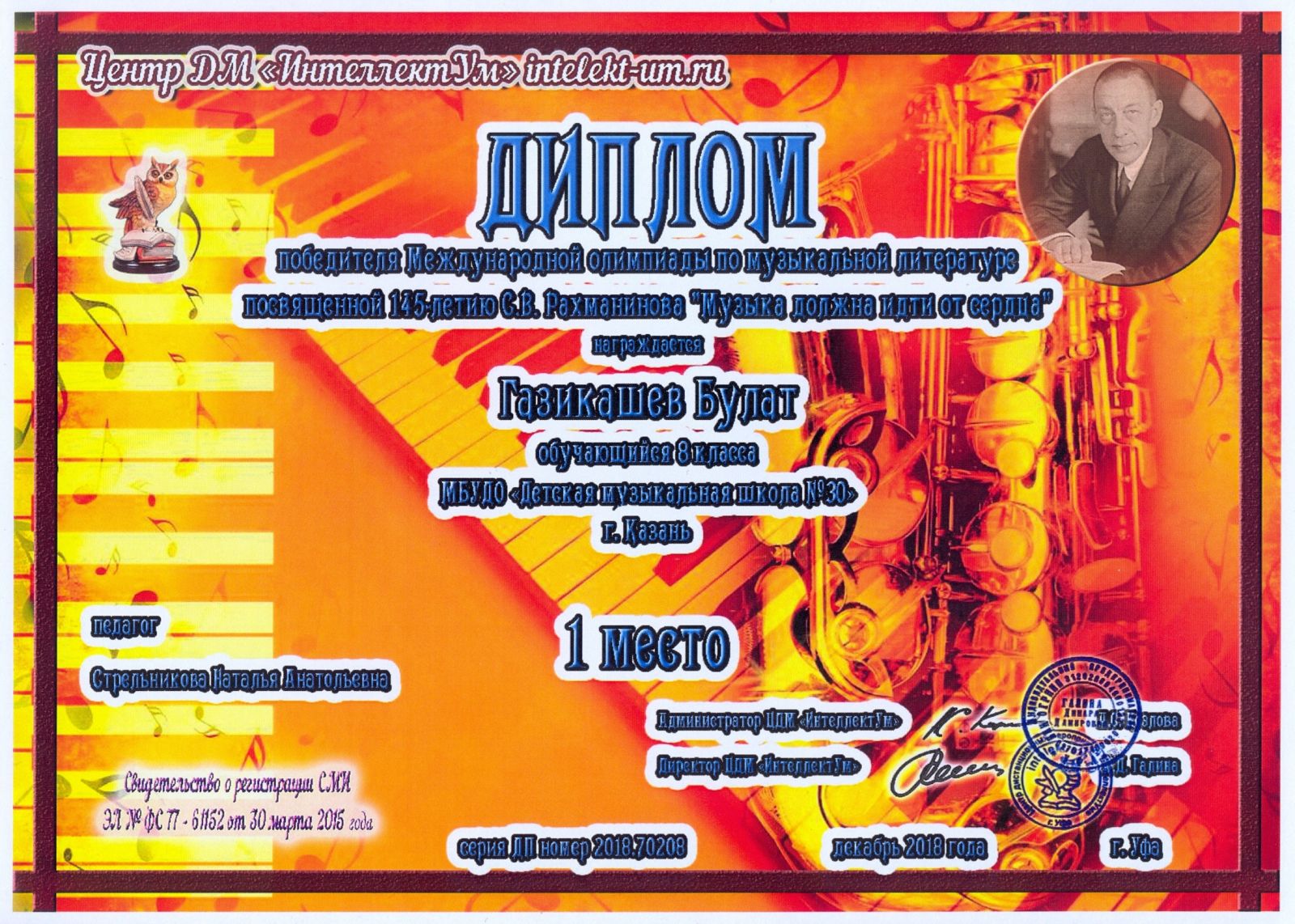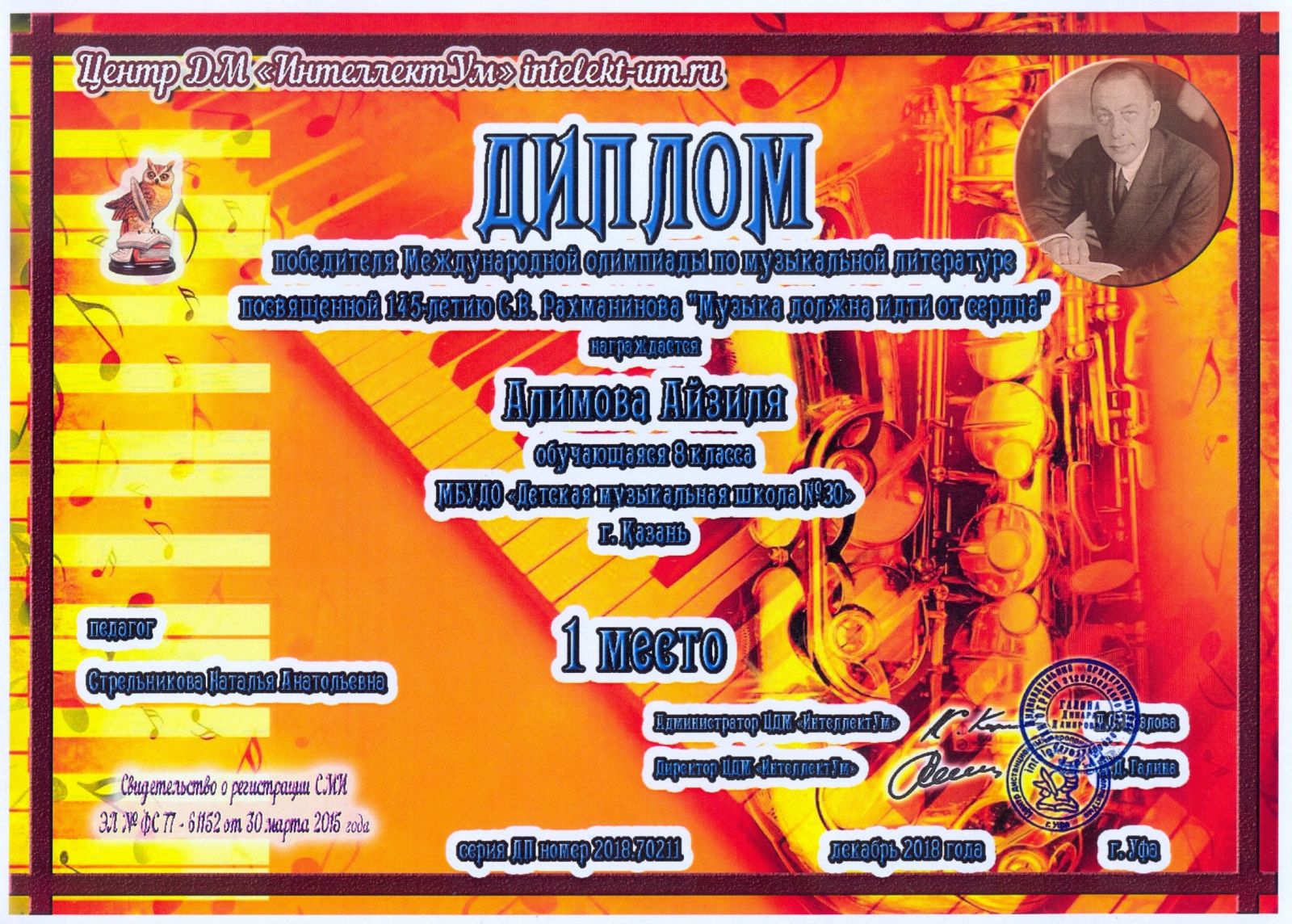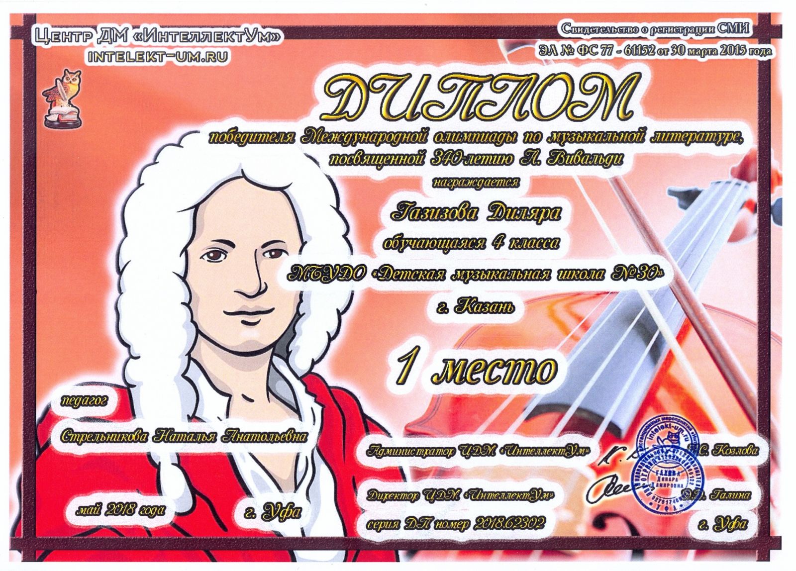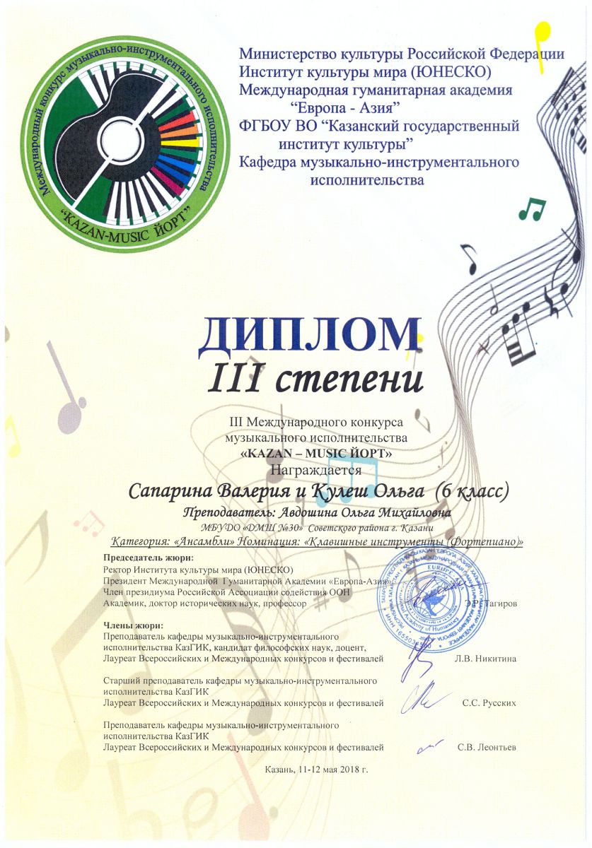 Международный фестиваль-конкурс "VIVAT, KAZAN!" в рамках творческого проекта "Адмиралтейская звезда" - Шайхиева Аделия - диплом II степени