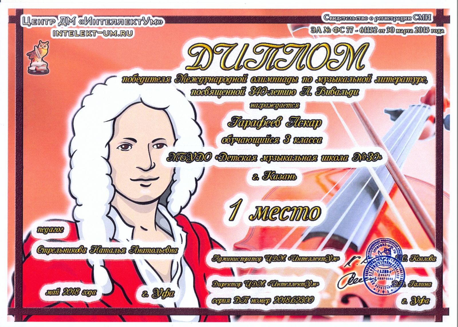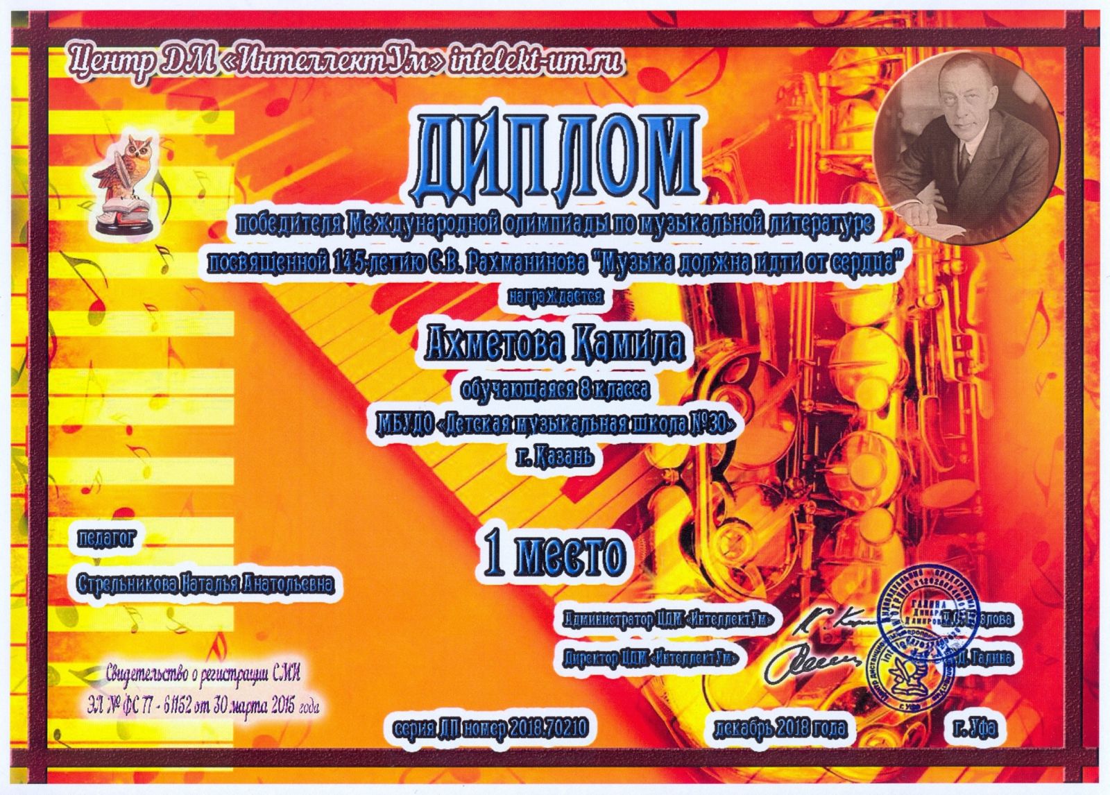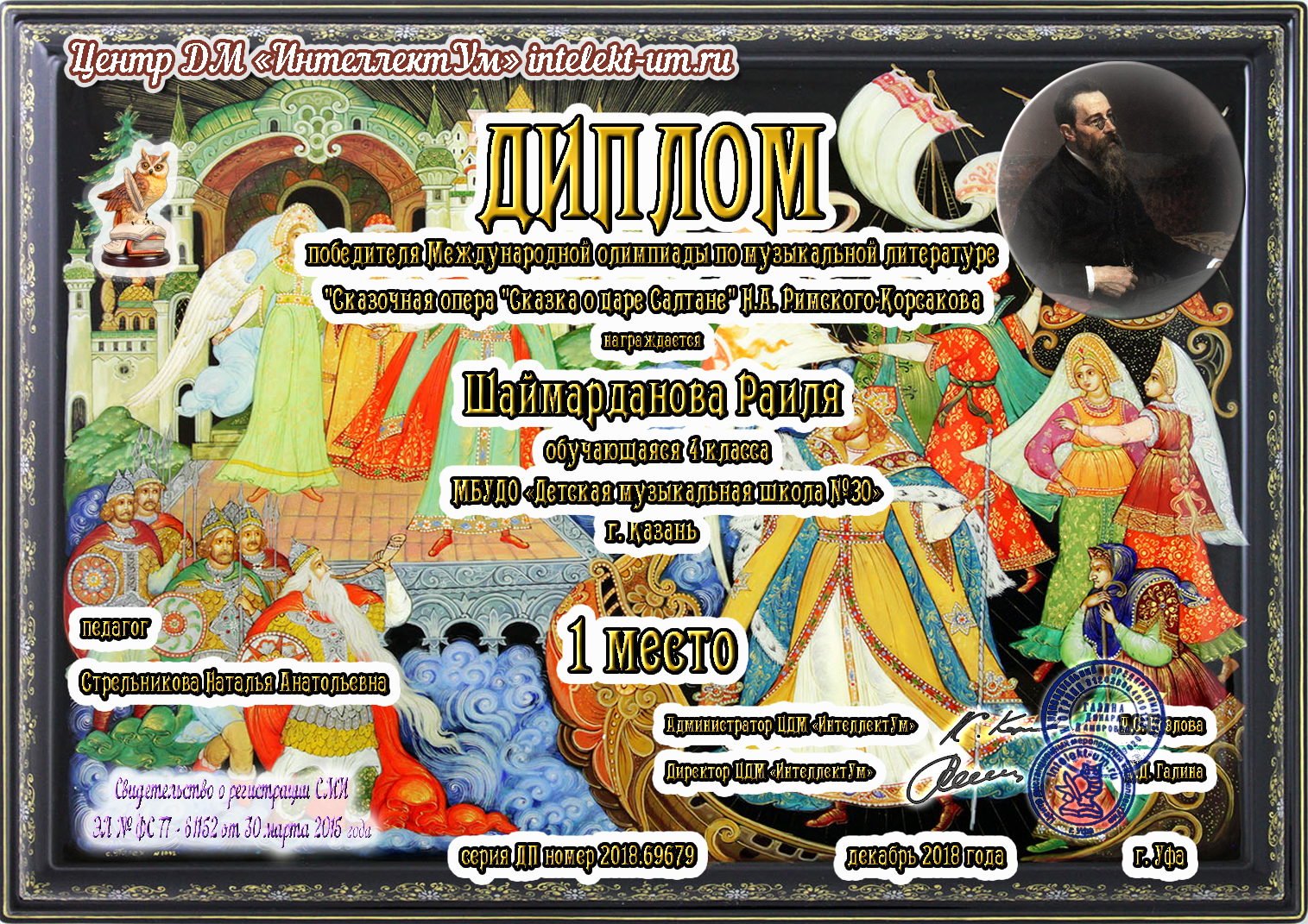 Международный фестиваль-конкурс "VIVAT, KAZAN!" в рамках творческого проекта "Адмиралтейская звезда" - Шайхиева Аделия - диплом II степени