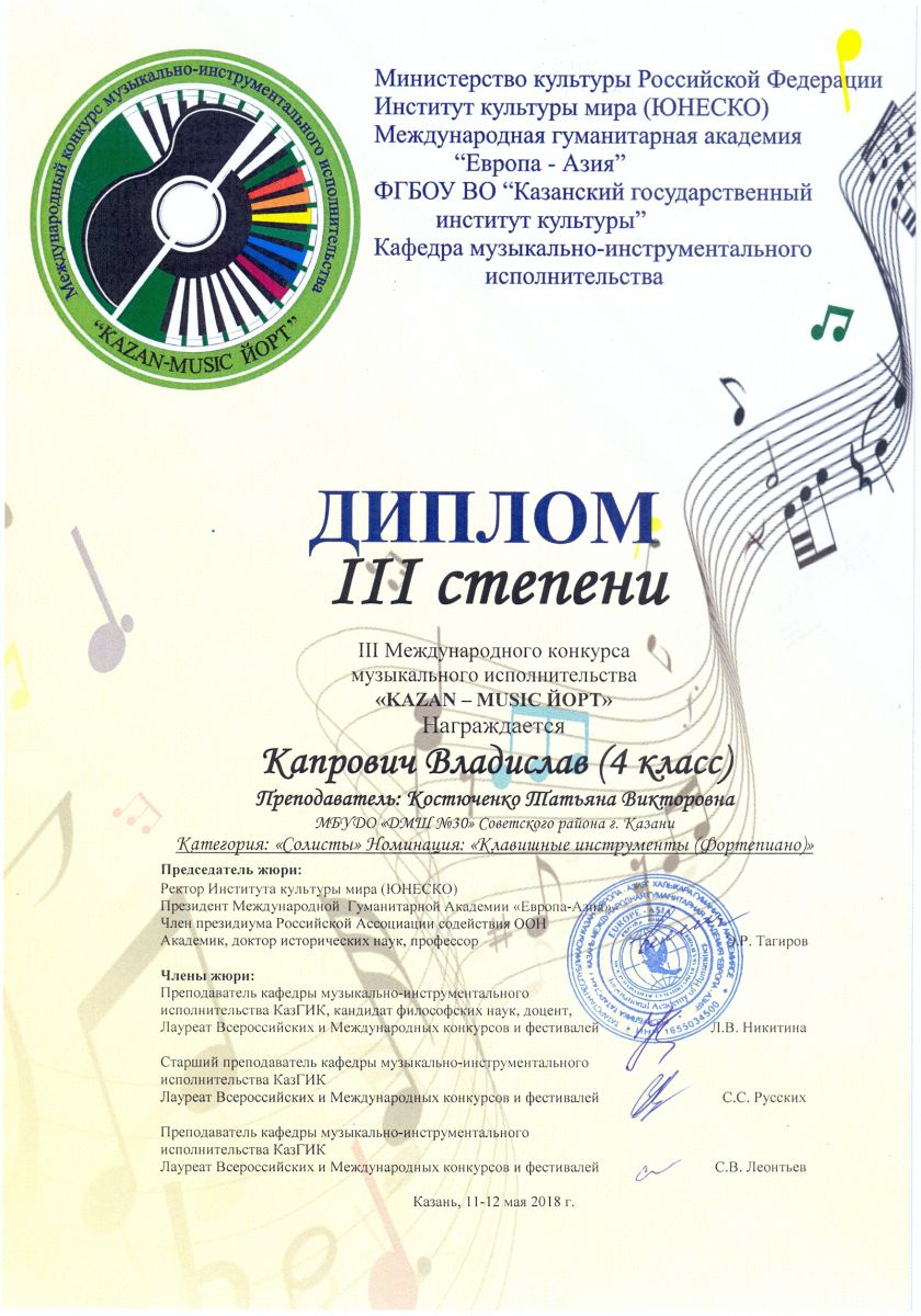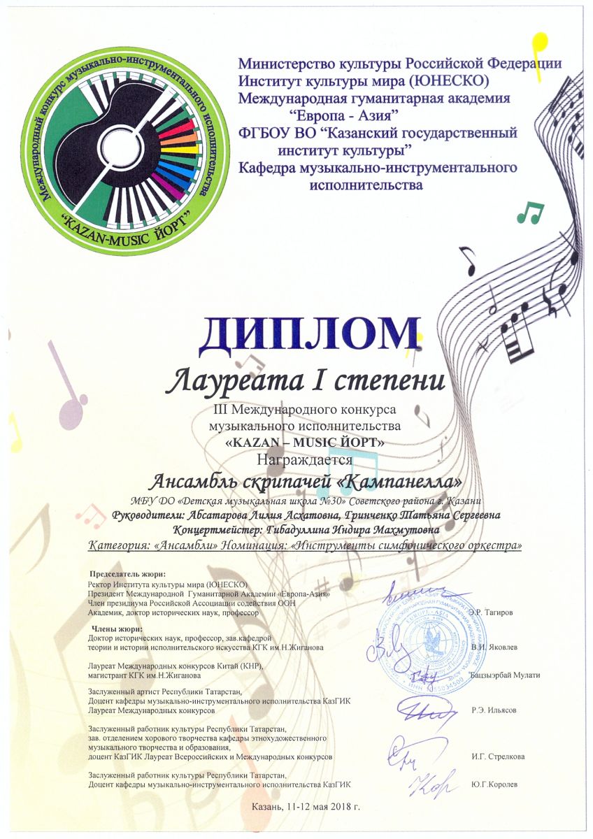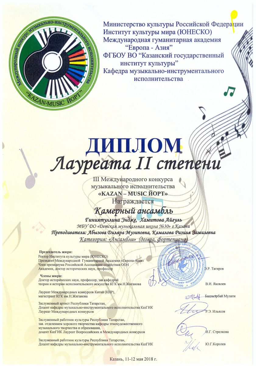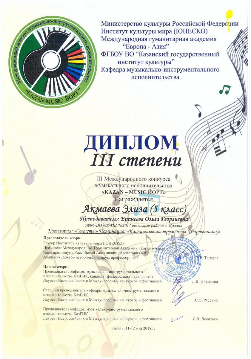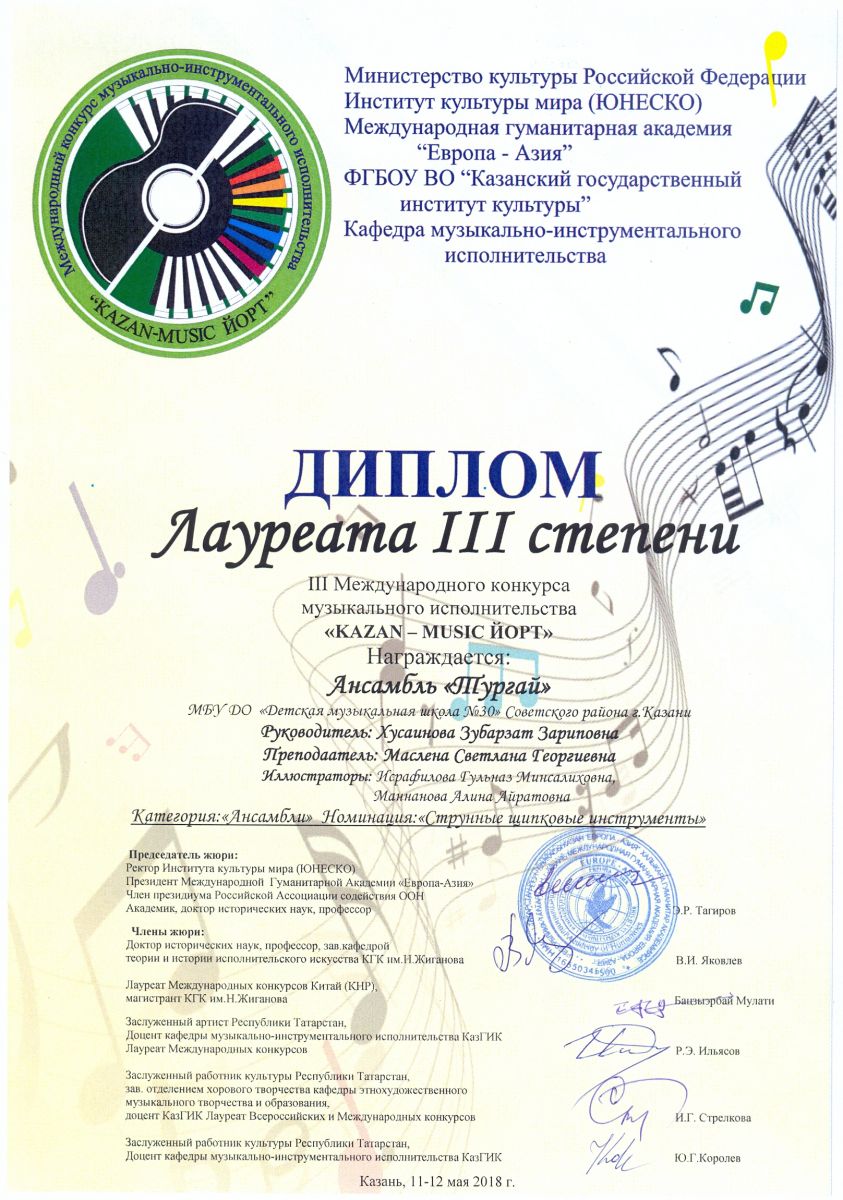 III Международный кокнурс музыкального исполнительства "KAZAN-MUSIC ЙОРТ" - Гремпель Анна - II место