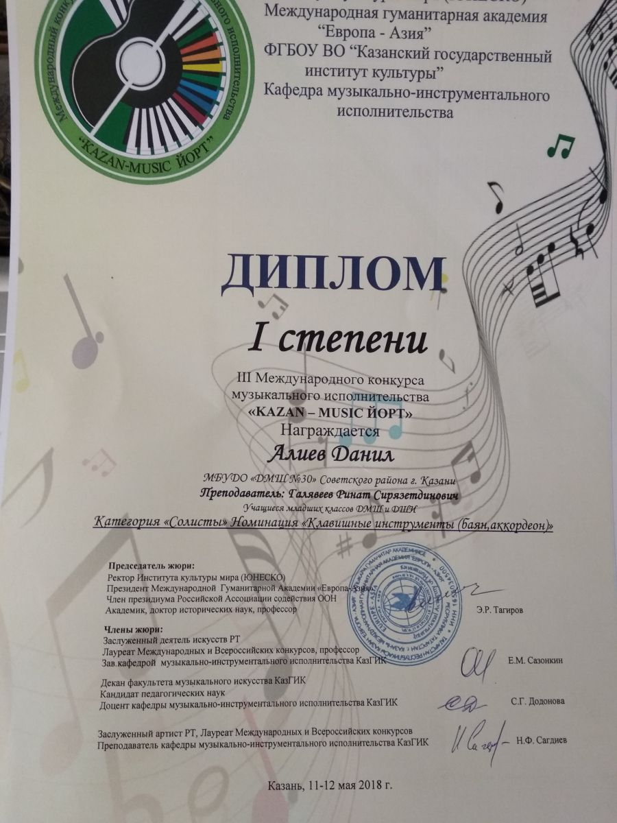 Международный фестиваль-конкурс "VIVAT, KAZAN!" в рамках творческого проекта "Адмиралтейская звезда" - Миркаев Марат - диплом II степени