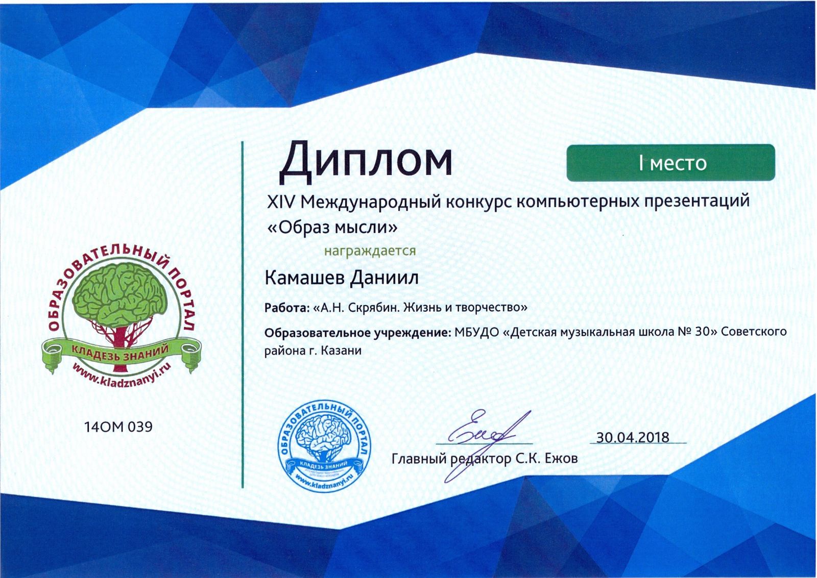 XIV Международный конкурс компьютерных презентаций "Образ мысли" - Камашев Даниил - I место