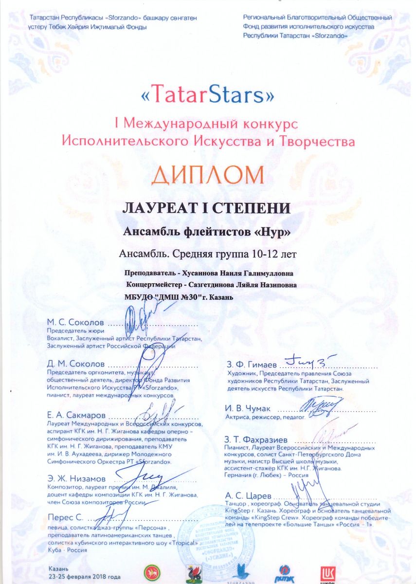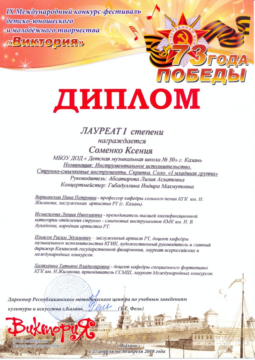 Международный фестиваль-конкурс "VIVAT, KAZAN!" в рамках творческого проекта "Адмиралтейская звезда" - Хабибуллина Карина - диплом I степени
