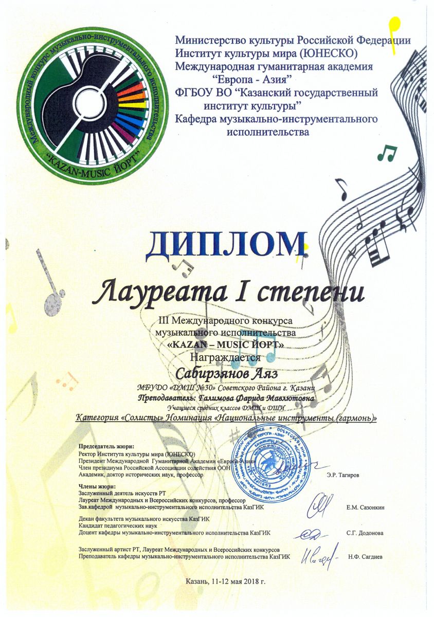 III Международный конкурс музыкального исполнительства "KAZAN-MUSIC ЙОРТ" - Сабирзянов Аяз - I место