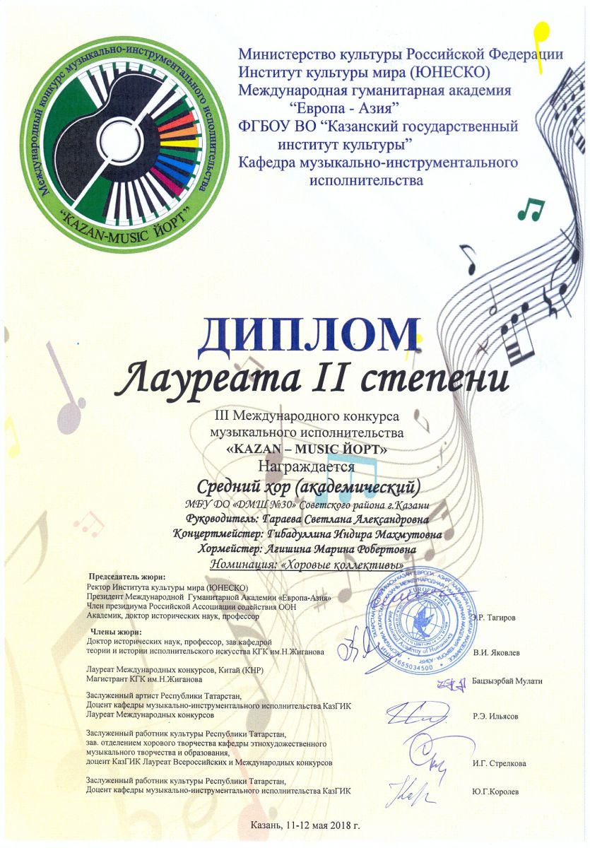 IV Международный телевизионный IT проект-конкурс "ТАЛАНТ-2018" - хор мальчиков - II место (руководитель Гараева С.А.)