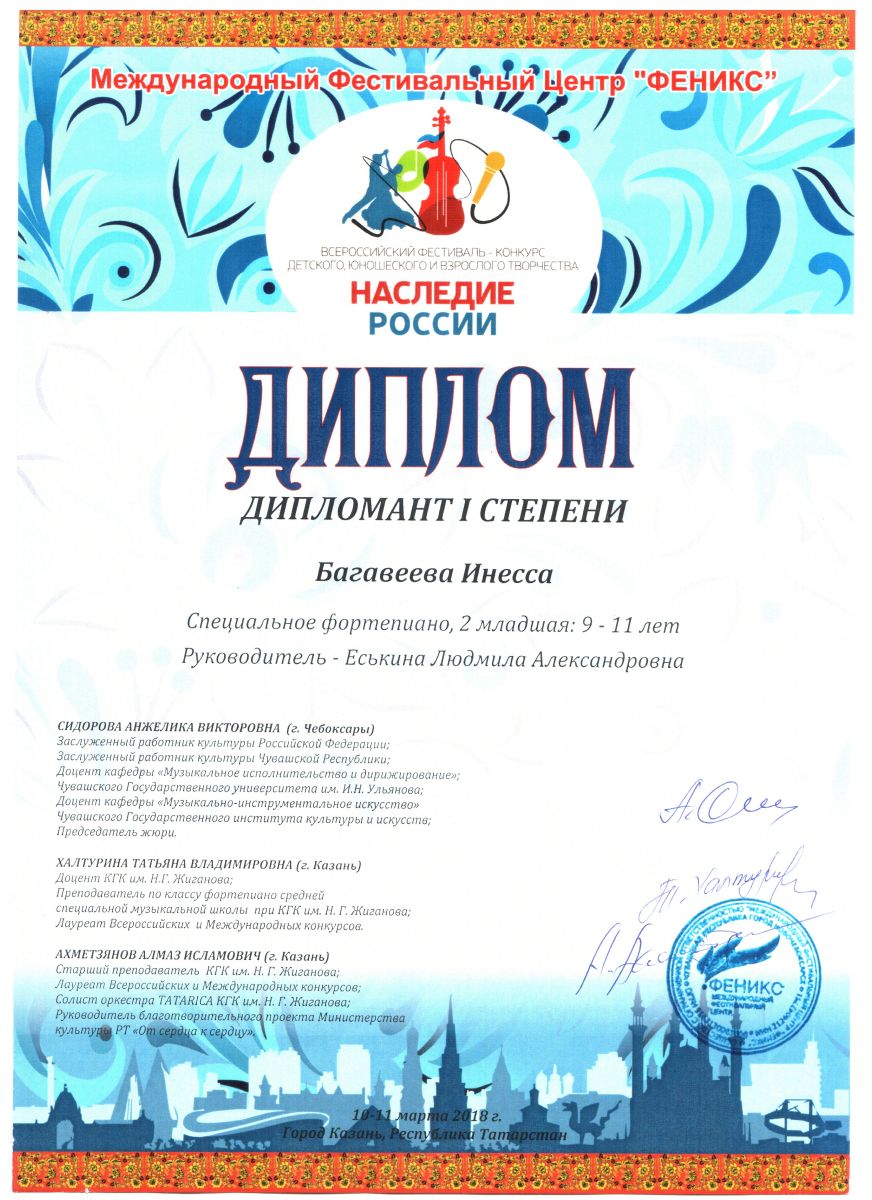 Всероссийский фестиваль-конкурс "Яблонь белый цвет" - Савельева Полина - диплом I степени