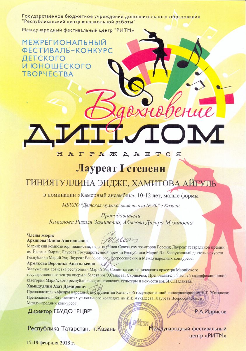Всероссийский фестиваль-конкурс "Твоё время" - Хамматовы Айгуль и Диля - II место
