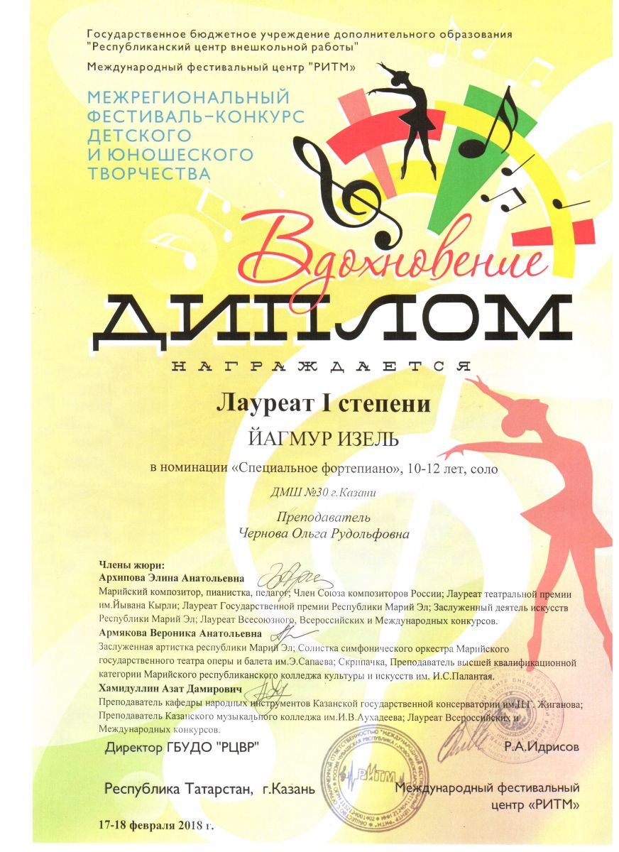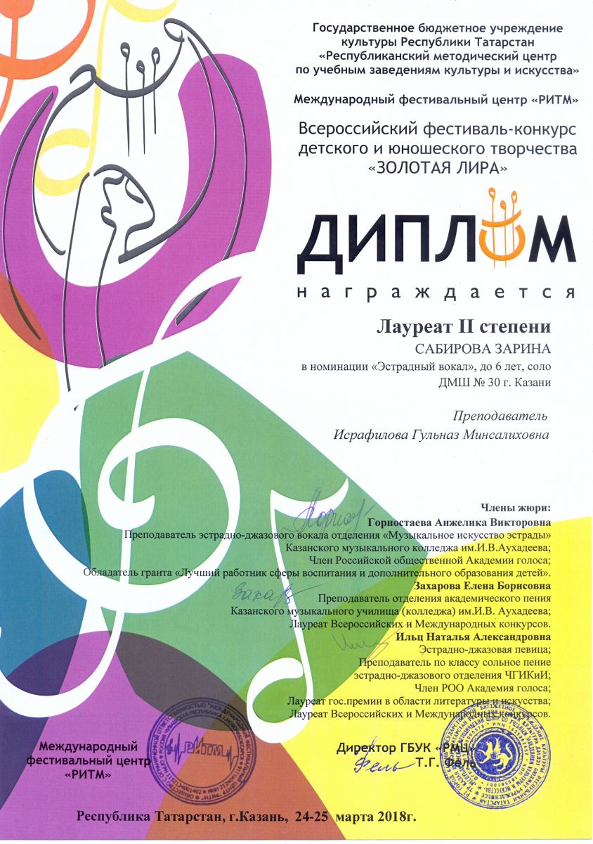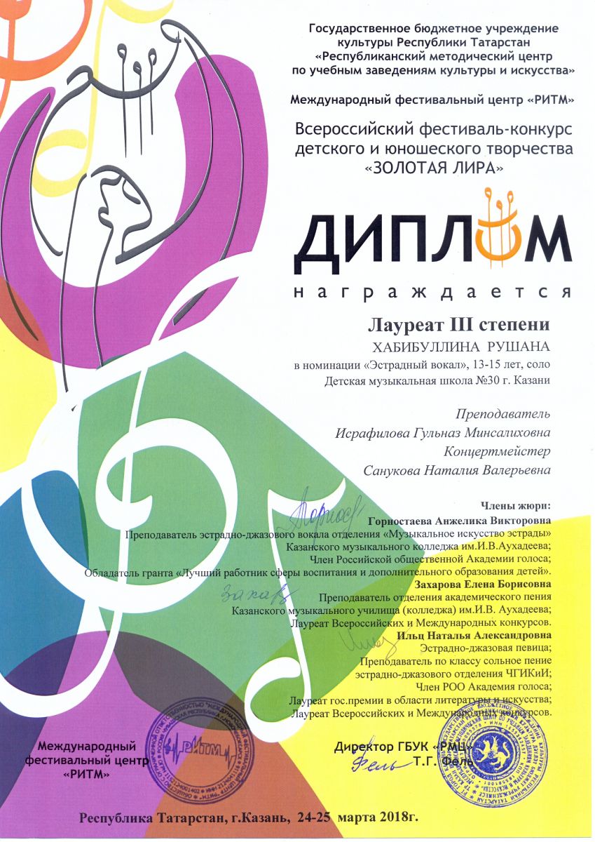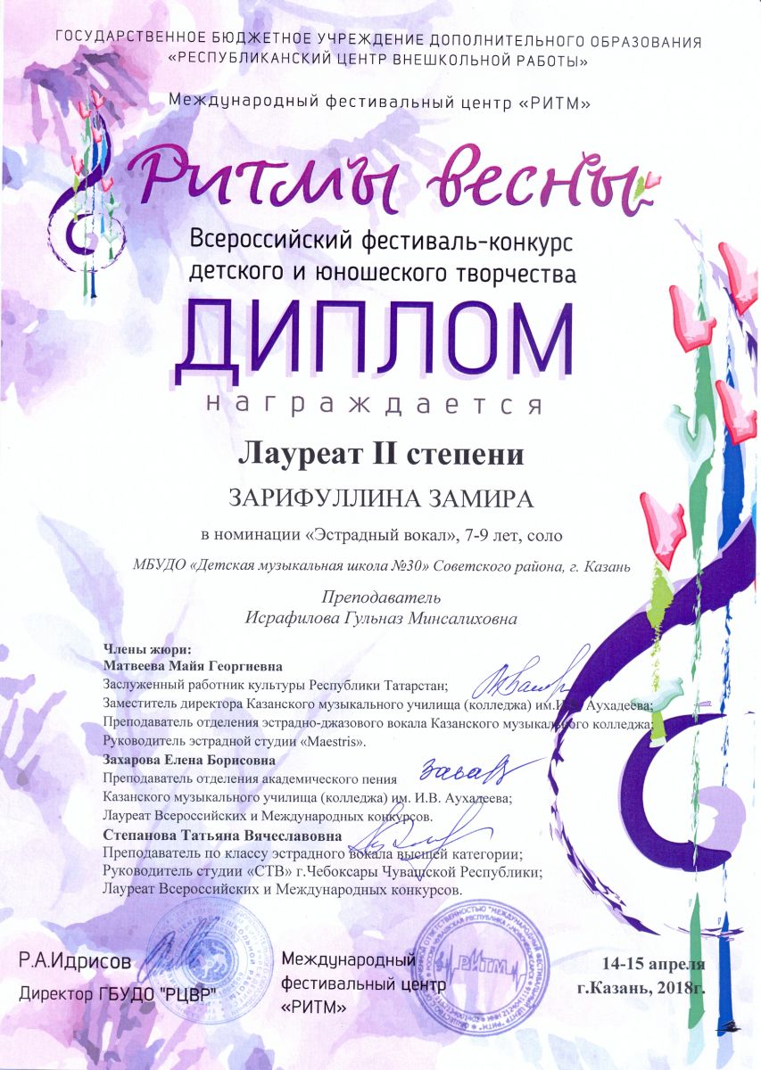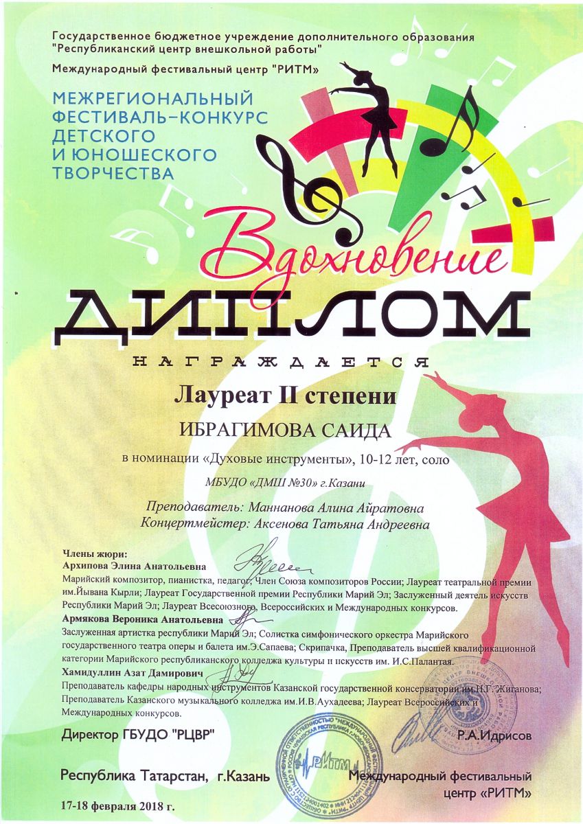 Всероссийский фестиваль-конкурс "Твоё время" - Андреева Ульяна - диплом