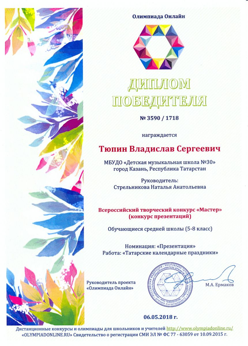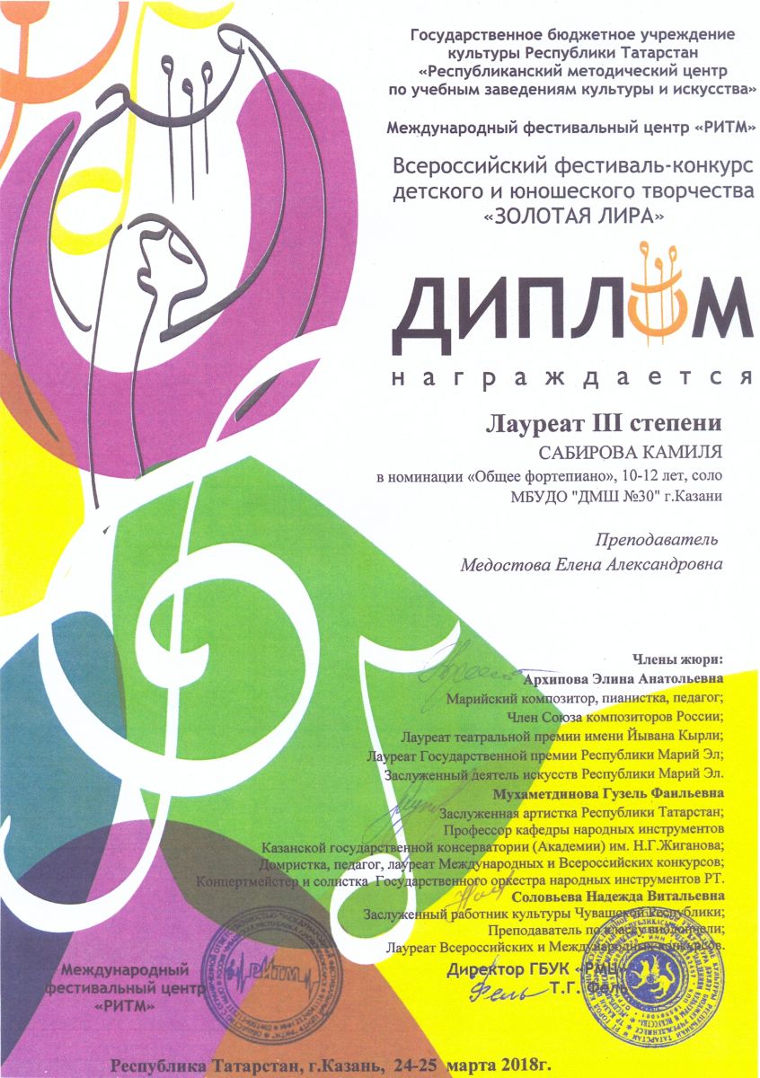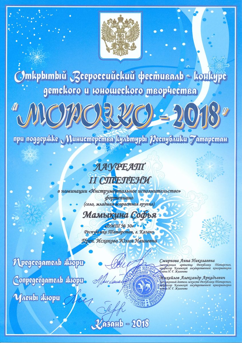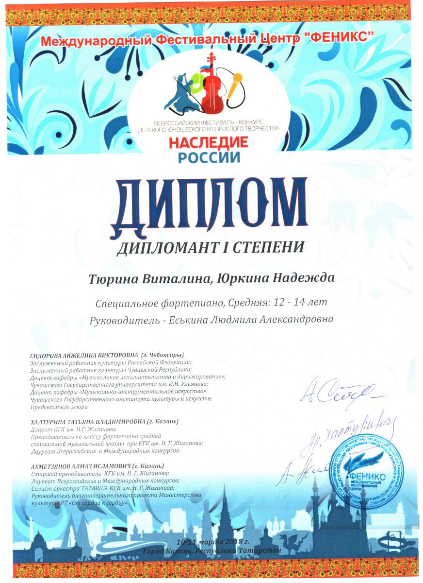 Всероссийский фестиваль-конкурс "Твоё время" - Андреева Ульяна - диплом