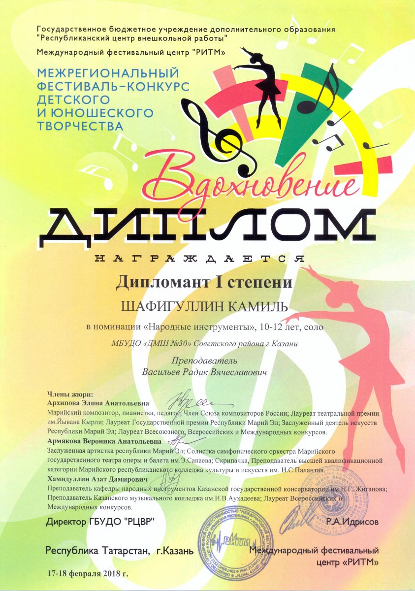 Межрегиональный конкурс "Мы все - дети своей страны" - Альмухаметов Тимур - I место