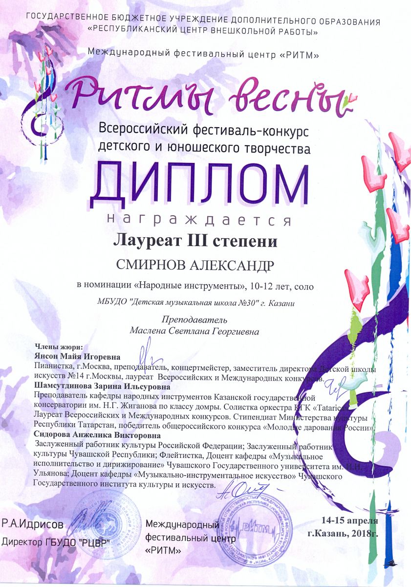 Всероссийский фестиваль-конкурс "Яблонь белый цвет" - Курмашев Данил - III место