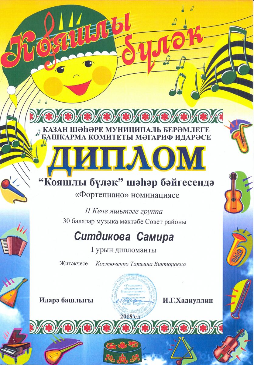 Городской конкурс татарской музыки "Кояшлы буләк" - Ситдикова Самира - диплом I степени