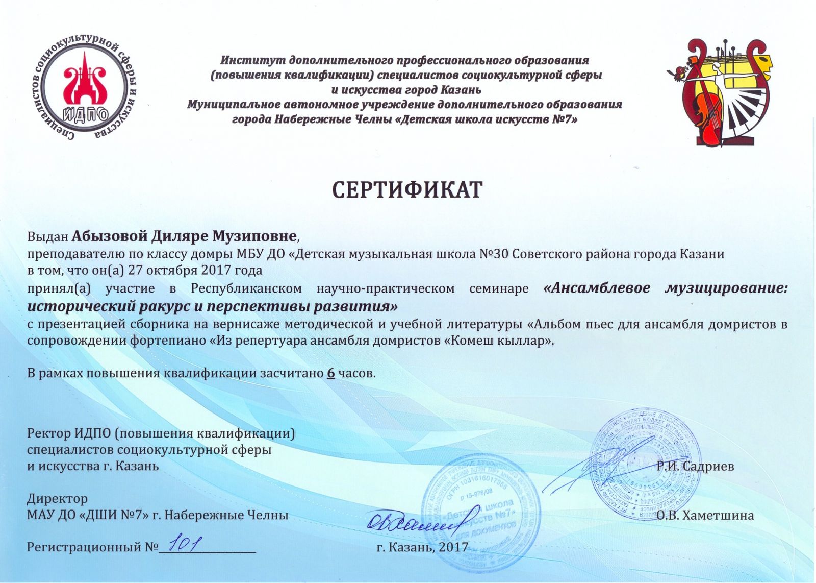 Мастер-классы профессора КГК им.Н.Жиганова Потаповой Л.Н. - Хусаинова З.З. - слушатель