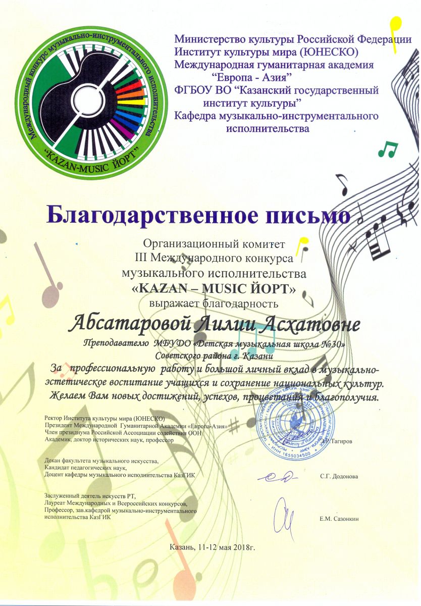 Муниципальное бюджетное учреждение дополнительного образования «Детская музыкальная школа №30» Советского района г.Казани