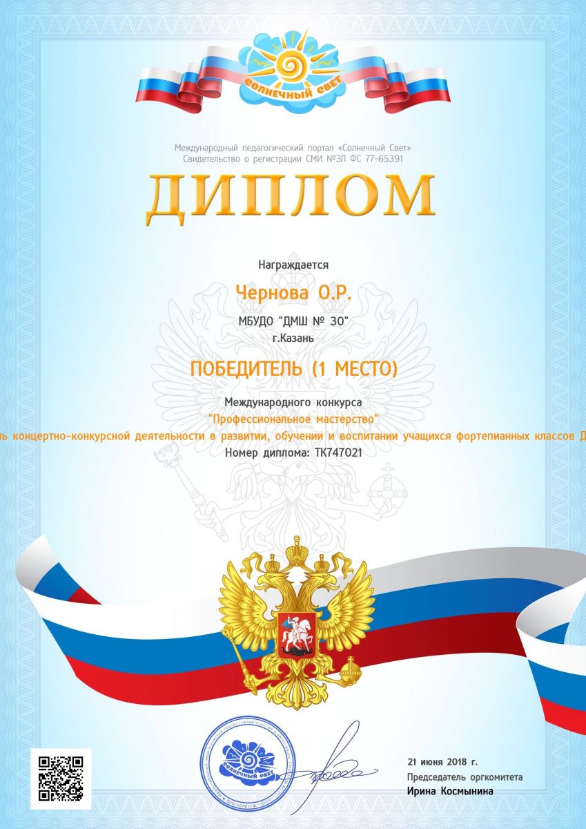Международный конкурс "Профессиональное мастерство" - Чернова О.Р. - I место
