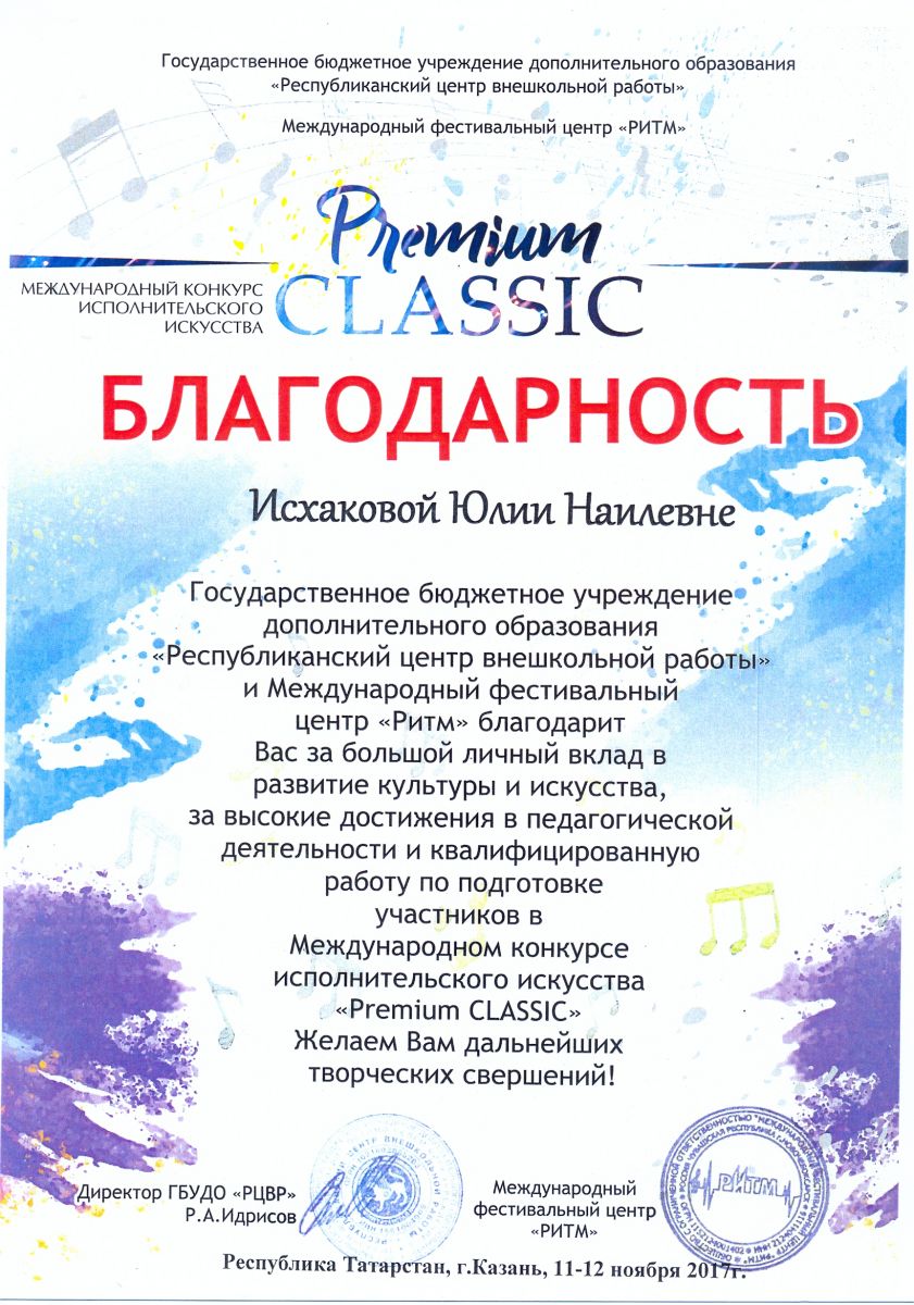 Международный конкурс-фестиваль "На крыльях таланта" - Исхакова Ю.Н. - благодарность