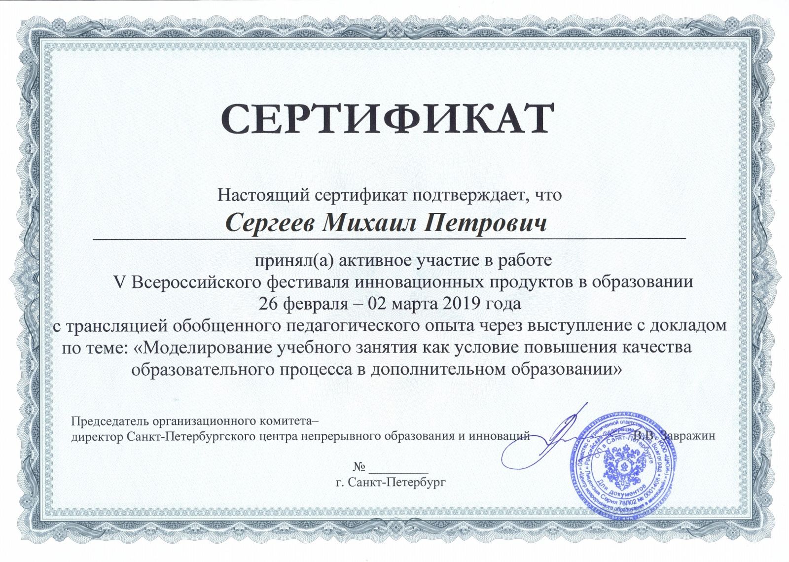 Всероссийский форум "Домра-2019" (г.Москва) - Абызова Д.М. - сертификат участника