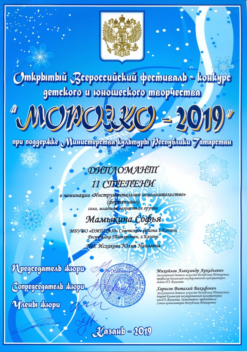 Всероссийский конкурс искусств "Новогодняя планета" - Акмаева Элиза - II место