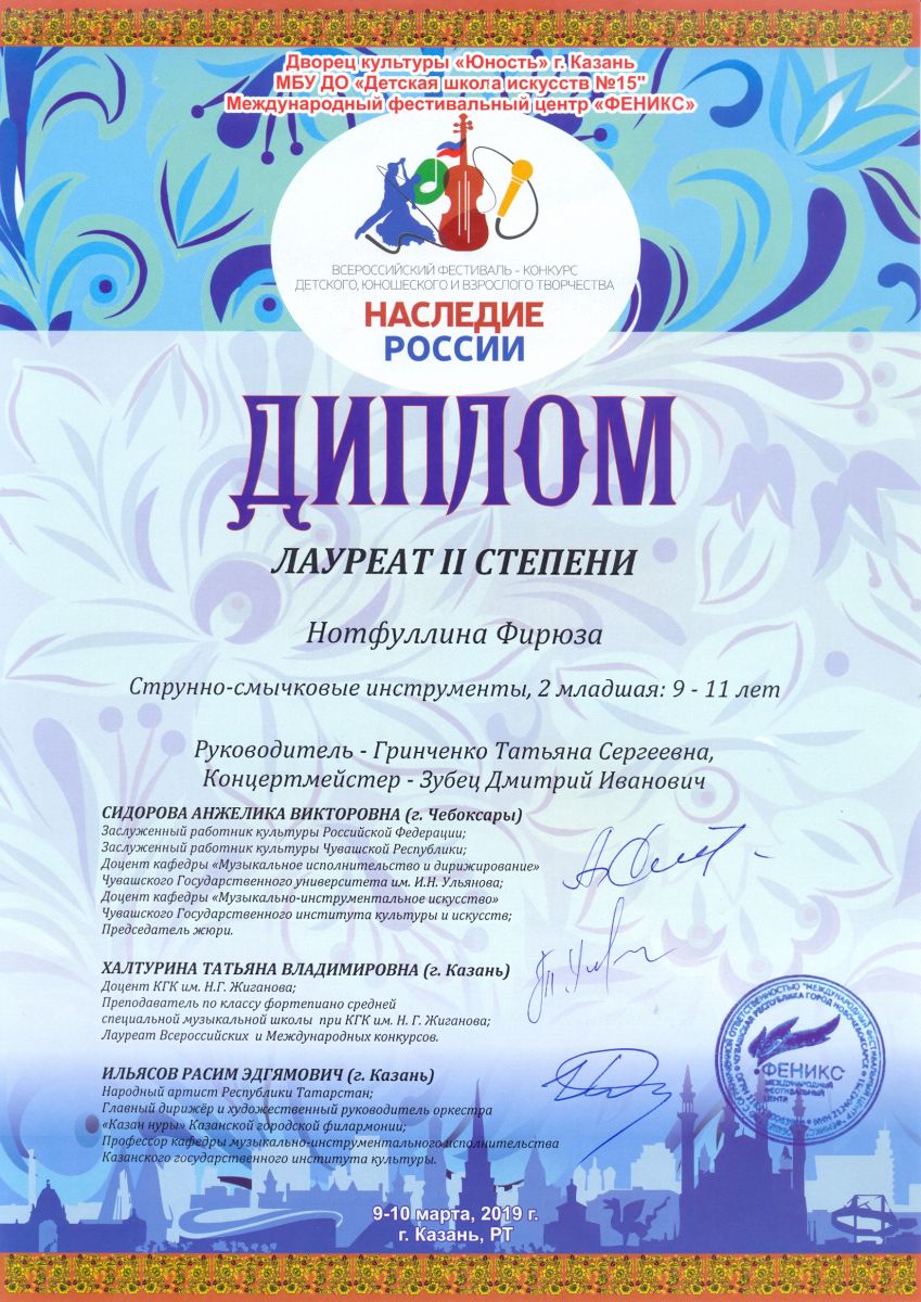 Всероссийский фестиваль-конкурс "Хрустальные звездочки-2019" - Хадиуллина Дана - диплом