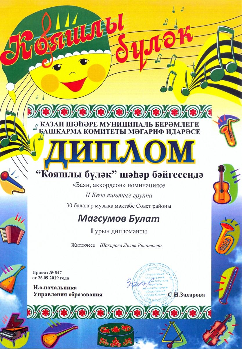 Городской конкурс татарской музыки "Кояшлы бүләк" - Магсумов Булат - диплом I степени