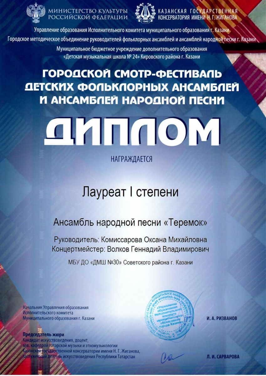 Муниципальное бюджетное учреждение дополнительного образования «Детская музыкальная школа №30» Советского района г.Казани