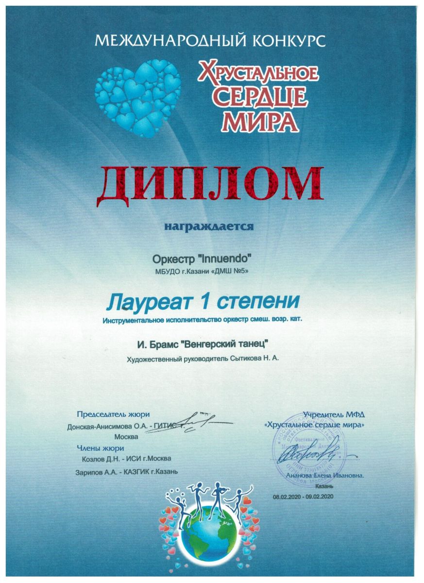 Международный конкурс "Хрустальное сердце мира" - оркестр преподавателей "Innuendo" - руководитель Сытикова Н.А. - Гран-при