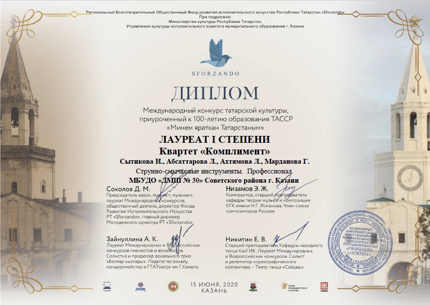 Международный конкурс "Минем яраткан Татарстан" - квартет "Комплимент" - I место
