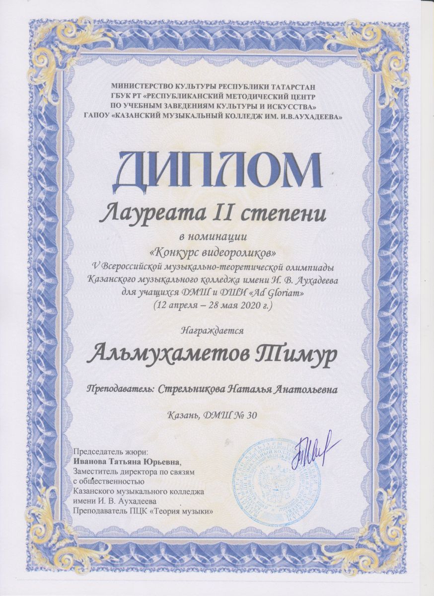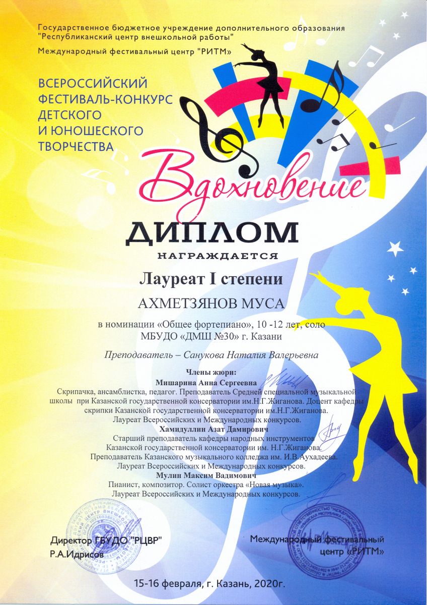 Всероссийский конкурс "Творческая карусель" - Магсумов Булат - III место