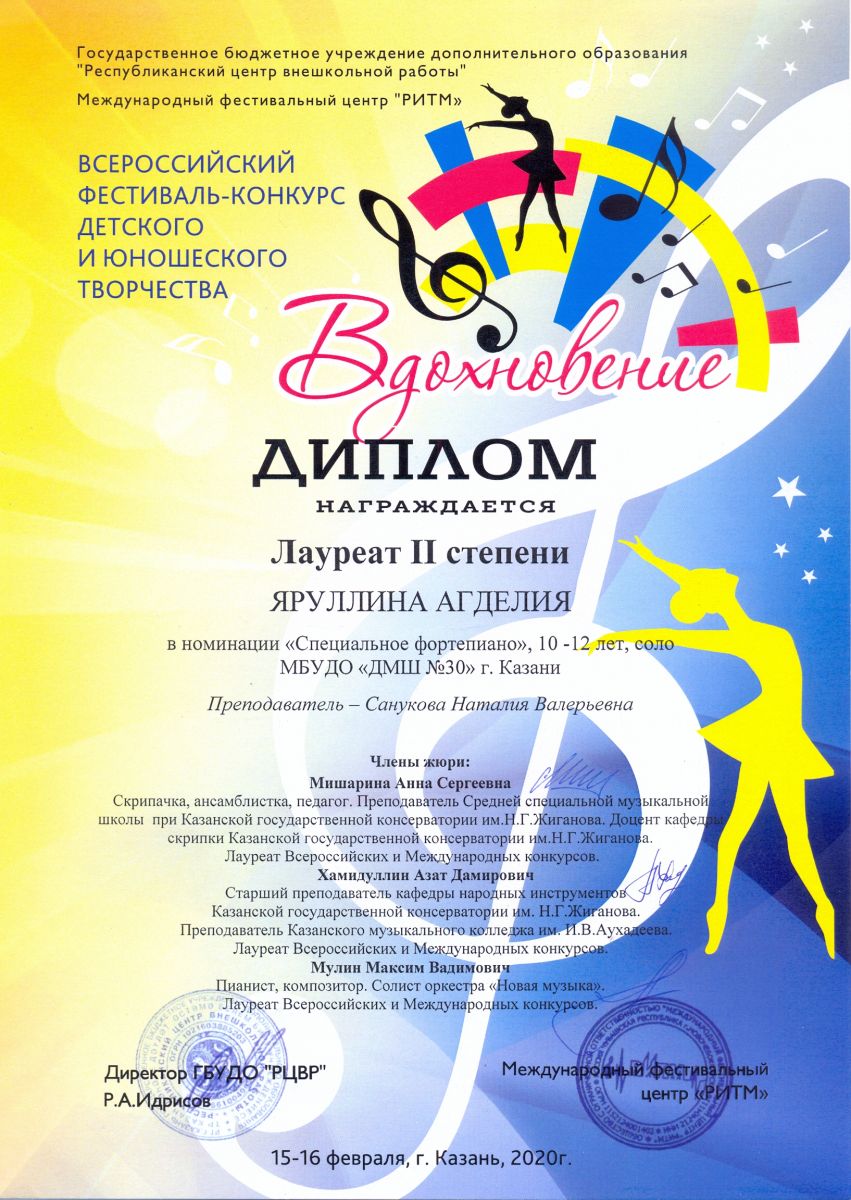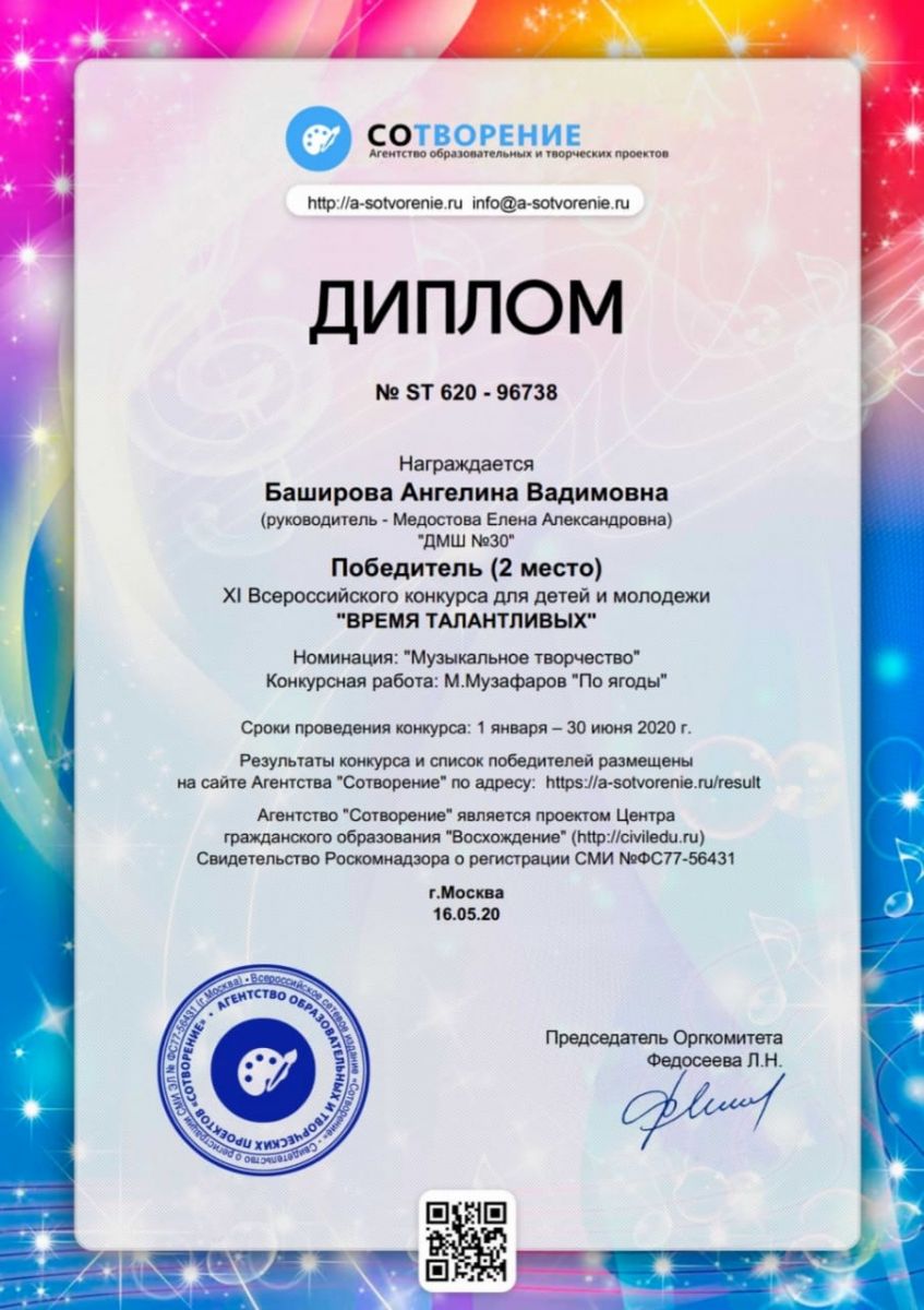 Всероссийский конкурс для детей и педагогов "Время талантлевых" - Баширова Ангелина - II место