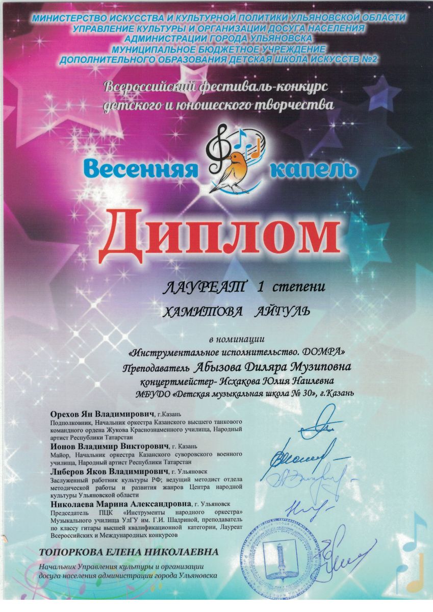 Всероссийский конкурс "Творческая карусель" - Хамитова Айгуль - I место