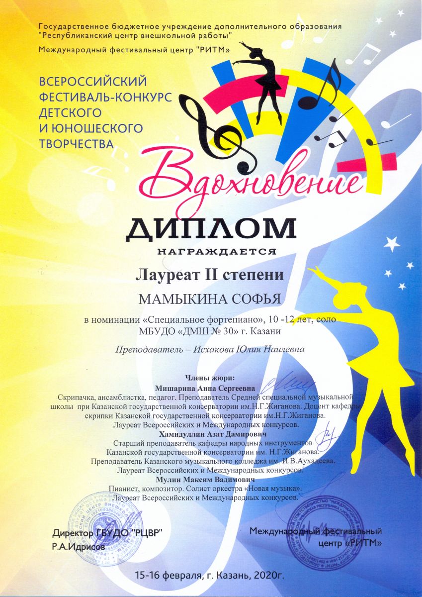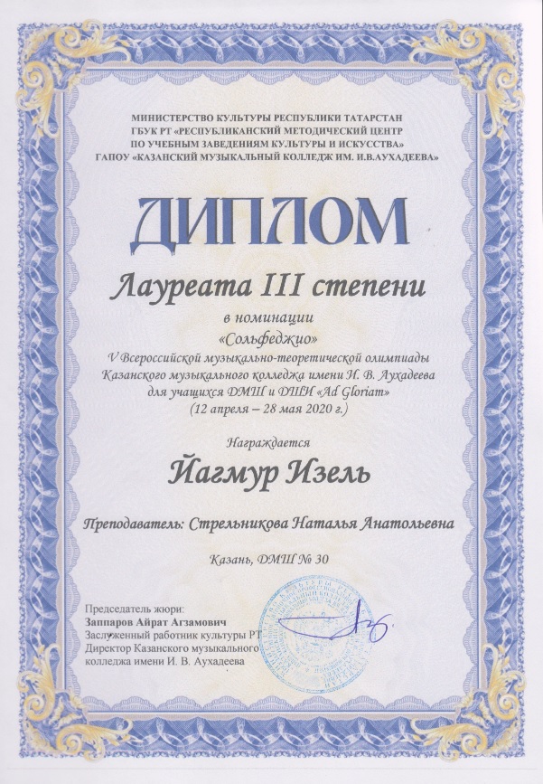 Всероссийский конкурс "Творческая карусель" - Гафарова Самира - II место