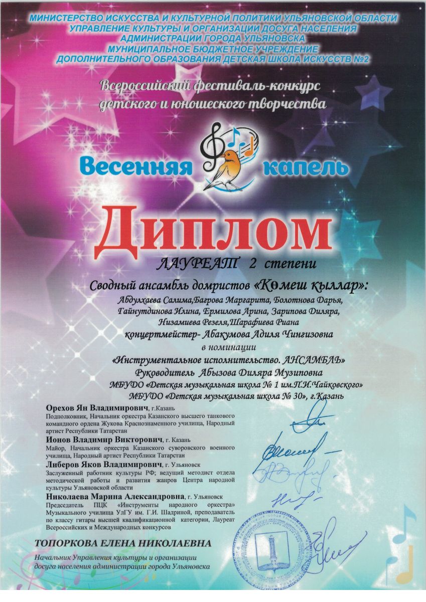 Всероссийский конкурс "Творческая карусель" - ансамбль домристов "Комеш кыллар" - II место