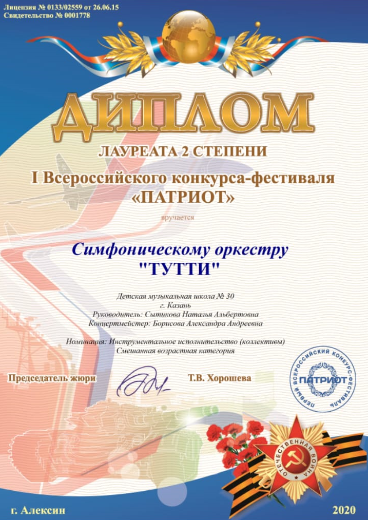 I Всероссийский конкурс-фестиваль "Патриот" - детский симфонический оркестр "Tutti" - II место
